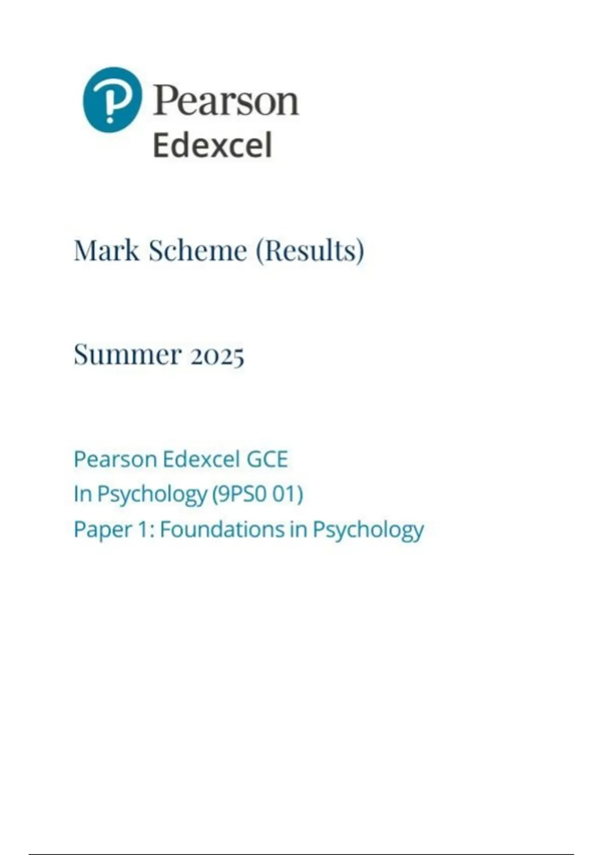 PEARSON EDEXCEL A LEVEL PSYCHOLOGY PAPER 1 AND 2 JUNE 2025 FINAL QUESTION PAPERS AND MARK SCHEME