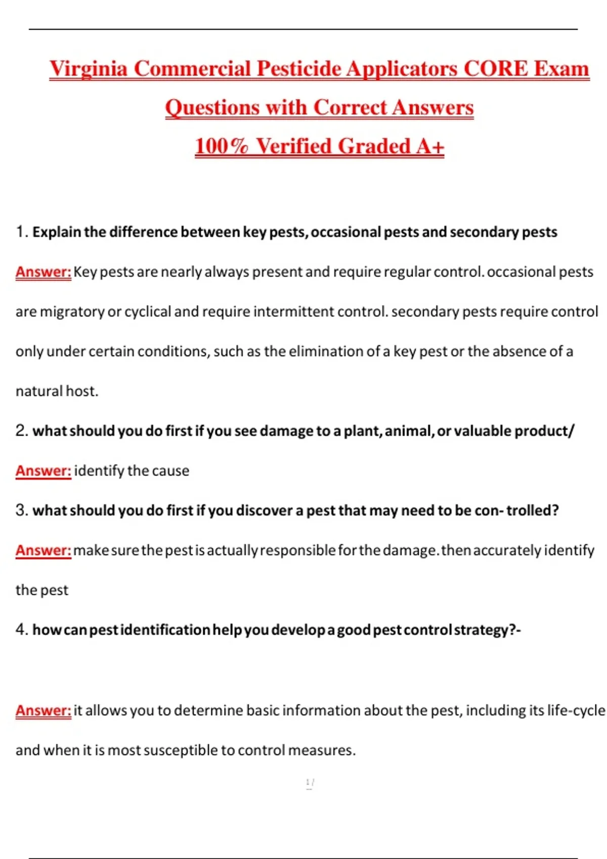 Bundled Package Deal For Virginia Pesticide Applicator Exams (Latest 2026/2027 Update) Complete Questions and Guide Answers, 100% Verified Graded A+ Bundled Package Deal For Virginia Pesticide Applicator Exams (Latest 2026/2027 Update) Complete Questions and Guide Answers, 100% Verified Graded A+