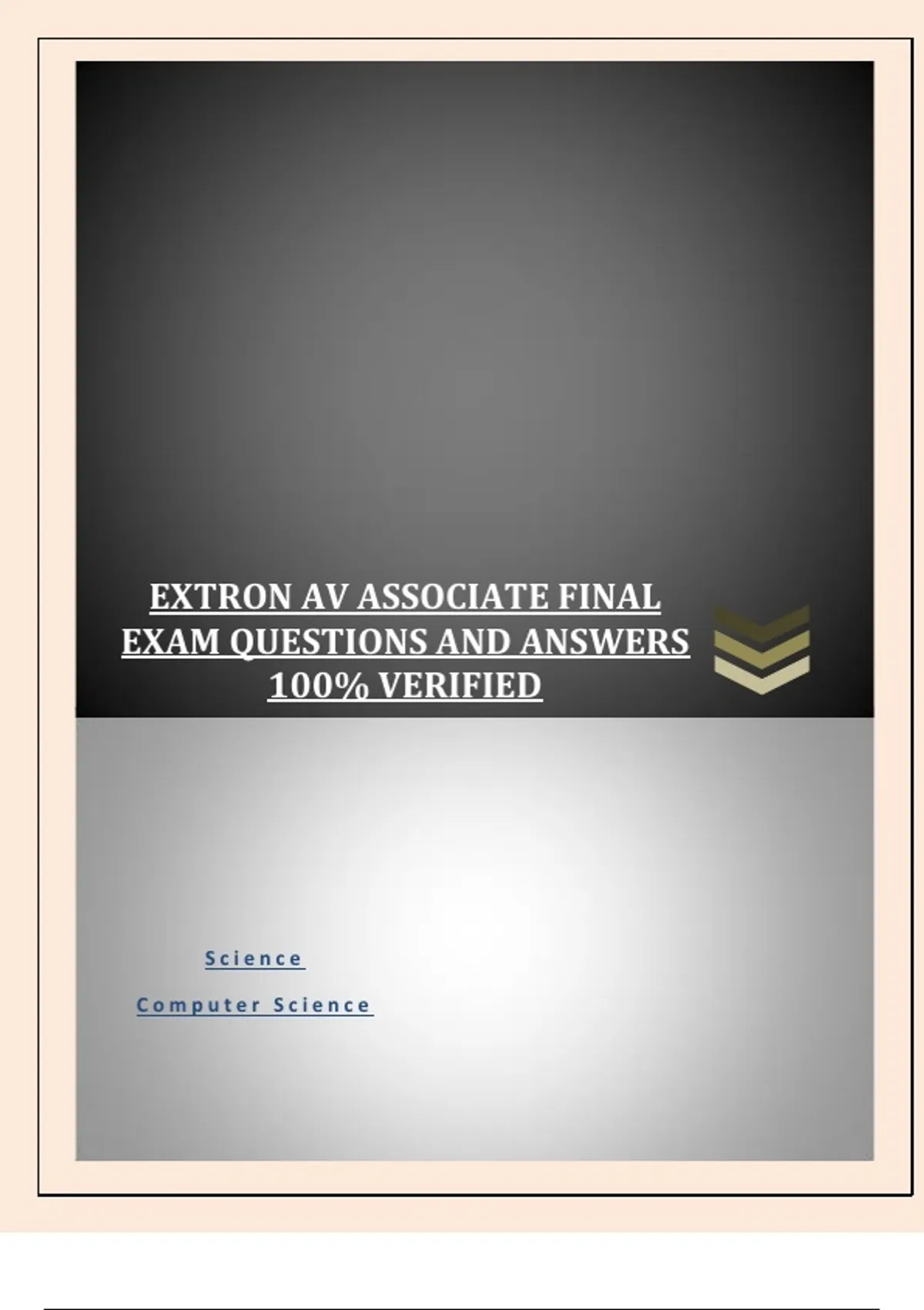 EXTRON AV ASSOCIATE CERT QUESTIONS AND ANSWERS 100% VERIFIED (NEW UPDATE) & EXTRON AV ASSOCIATE FINAL EXAM QUESTIONS AND ANSWERS 100% VERIFIED. #ALREADY PASSED EXAMS ON EXTRON AV ASSOCIATE, ALL IN ONE PACKAGE DEAL SOLUTION!!