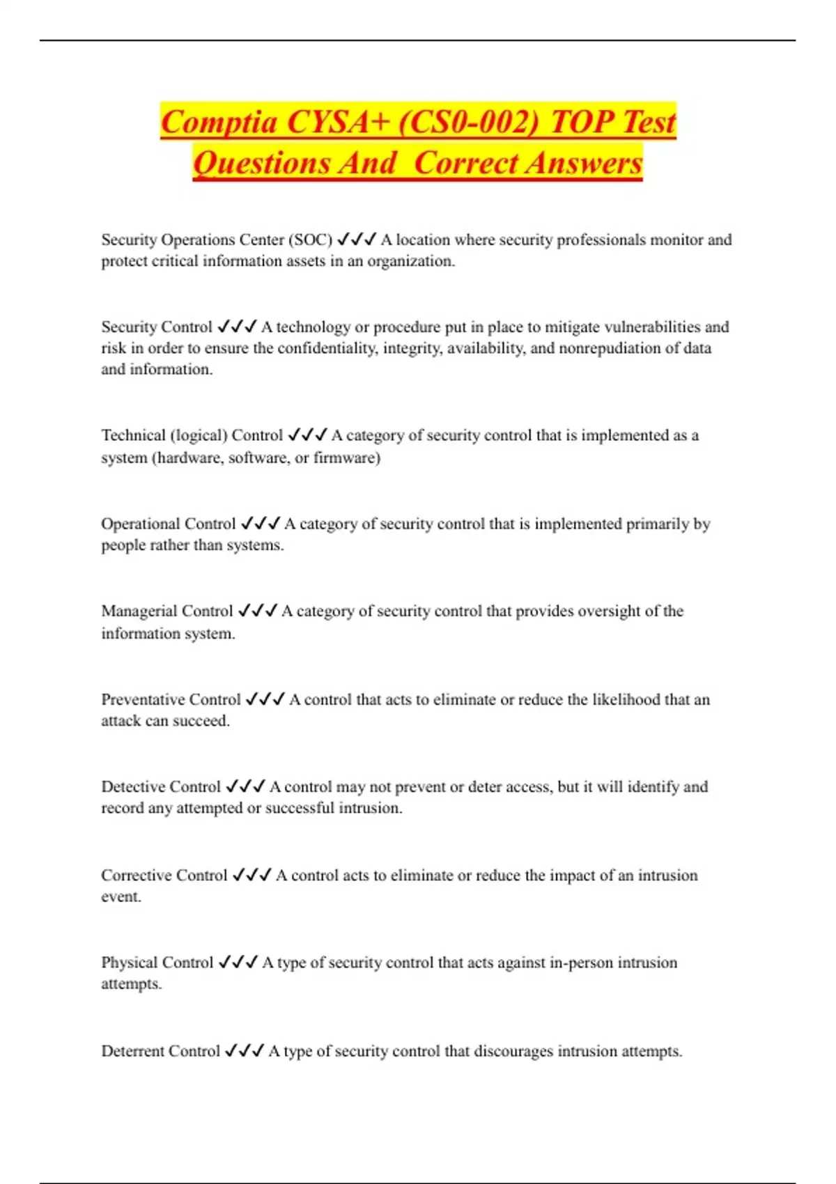 Cysa study guide UPDATED ACTUAL Questions and CORRECT Answers