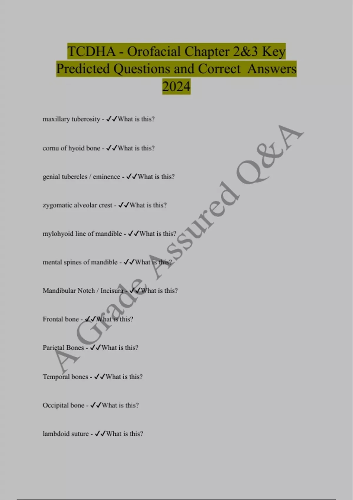 TCDHA Bundled Exam Questions WITH CORRECT Answers