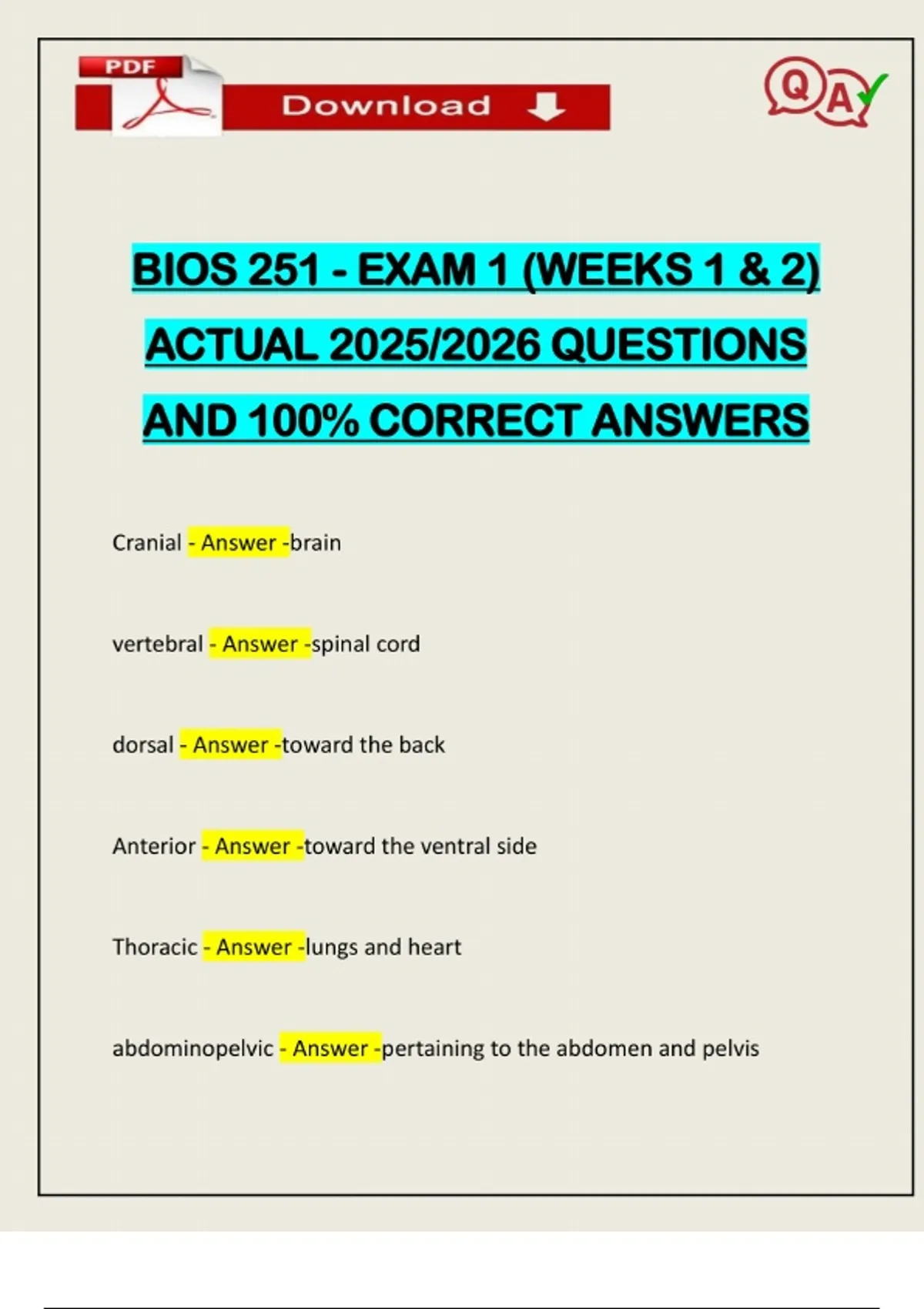 PACKAGE DEAL::: BIOS 251 EXAMS WITH FINALS ACTUAL 2025/2026 | CHAMBERLAIN UNIVERSITY