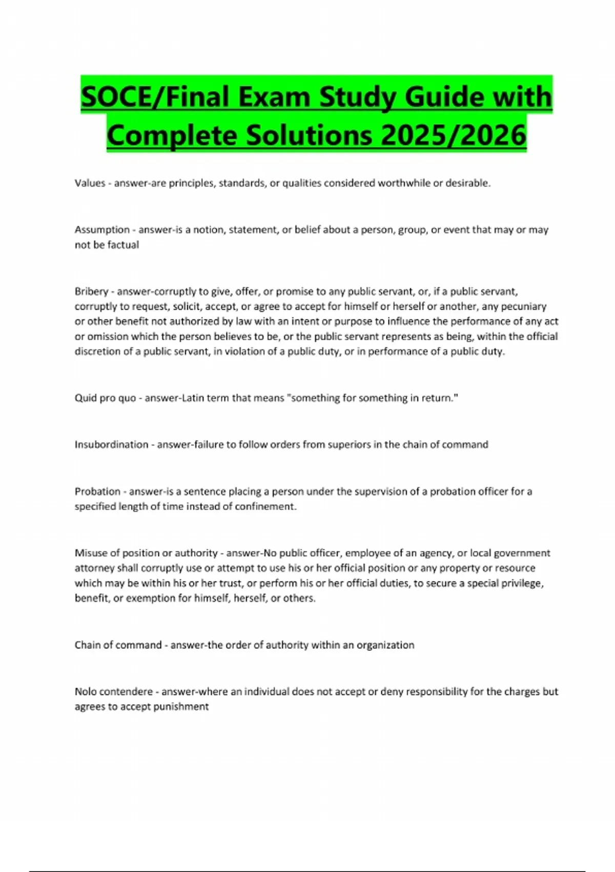 Package deal For FDLE SOCE EXAM REVIEW WITH 100% CORRECT ANSWERS 2025/2026