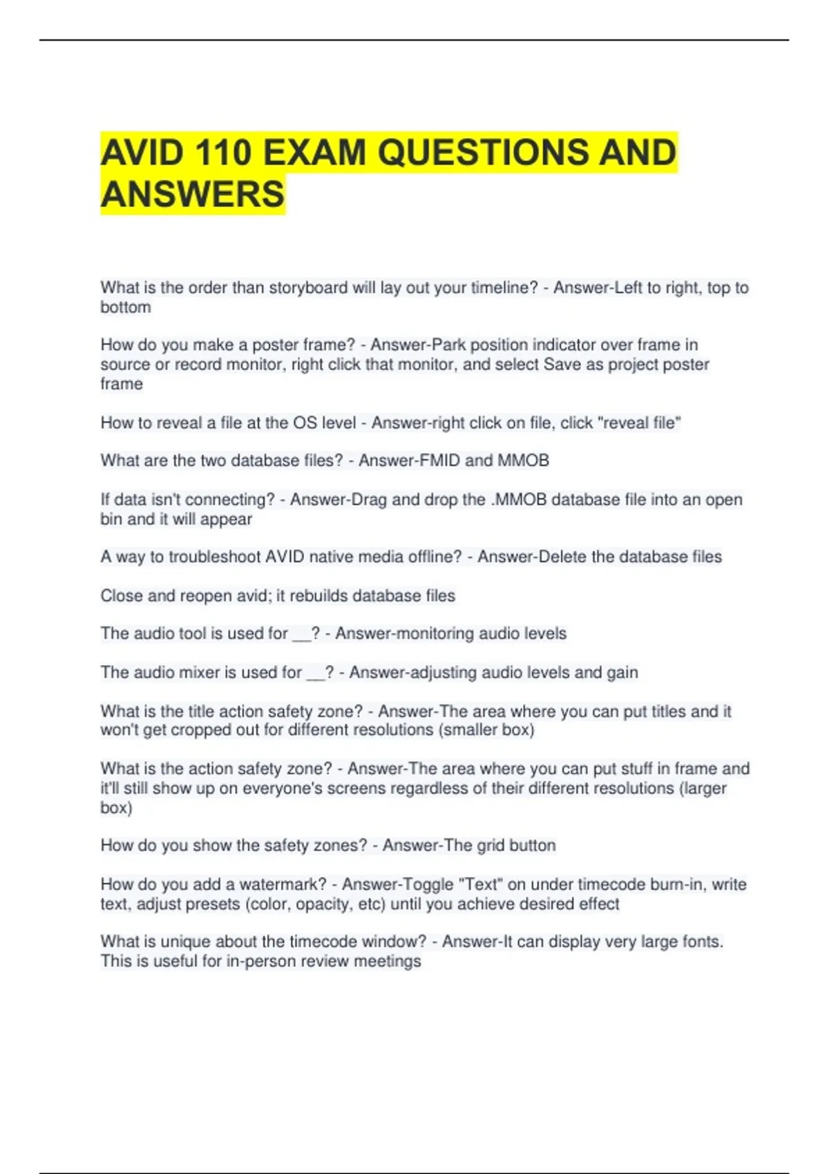 BUNDLE FOR AVID 110 EXAM QUESTIONS AND ANSWERS