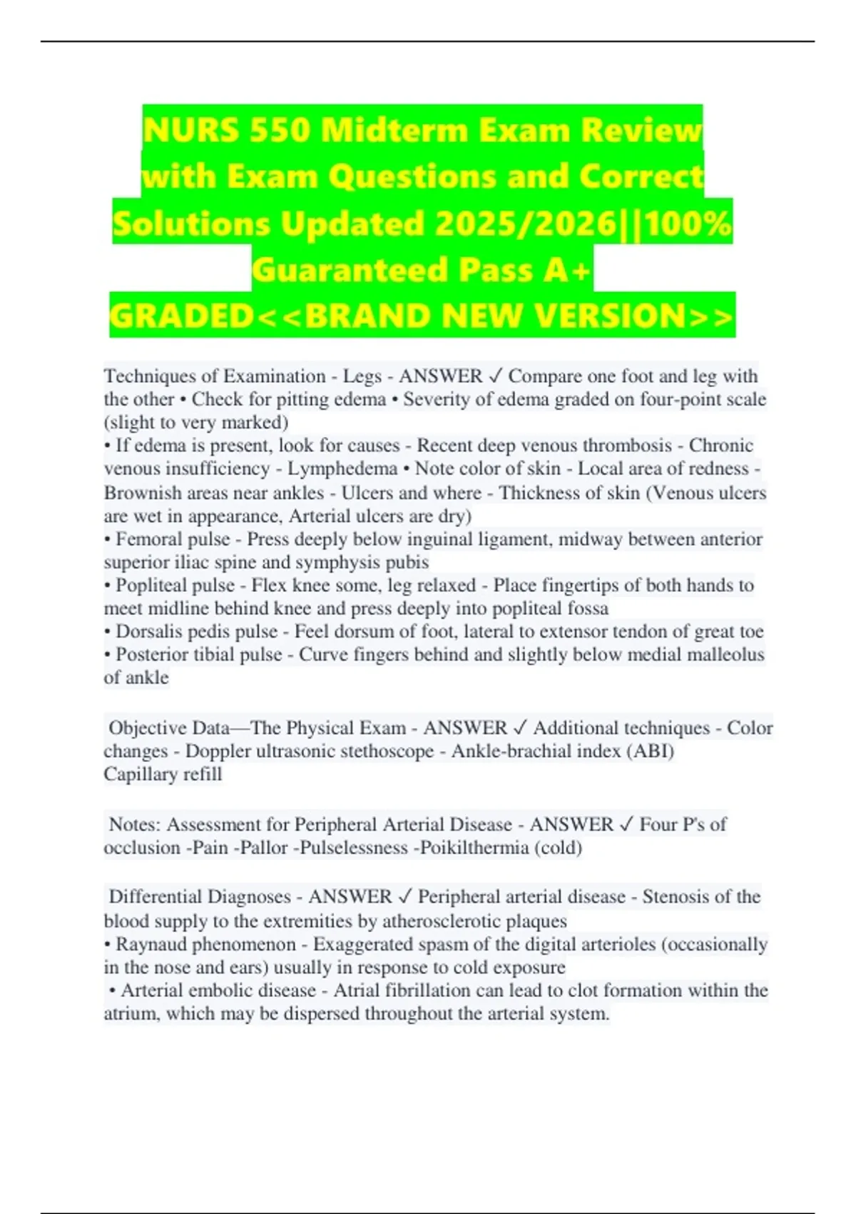 BUNDLE For NURS 550 Midterm Exam Review with Exam Questions and Correct Solutions Updated 2025/2026||100% Guaranteed Pass A+ GRADED BRAND NEW VERSION Objective Assessment Exam Questions with Correct Detailed Solutions Already Graded A+ Updated 2025/2026||