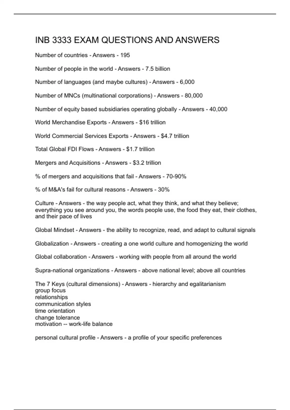 INB 3333 FINAL QUESTIONS & ANSWERS 2 Exam (elaborations) INB 3333 FINAL QUESTIONS AND ANSWERS 3 OTHER INB 3333 FINAL EXAM STUDY GUIDE 4 Exam (elaborations) INB 3333 EXAM QUESTIONS AND ANSWERS 5 Exam (elaborations) INB 3333 FINAL QUESTIONS AND ANSWERS 6 Exam (elaborations) INB 3333 FINAL QUESTIONS AND ANSWERS 7 Exam (elaborations) INB 3333 QUI