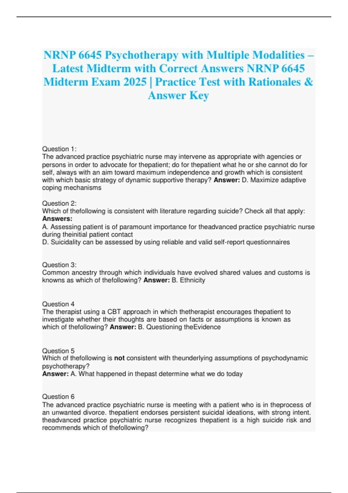 NRNP 6645: Advanced Psychopharmacology – Comprehensive Bundled Examination Series for Clinical Mastery of Psychiatric Medication Management Across the Lifespan in Advanced Nursing Practice