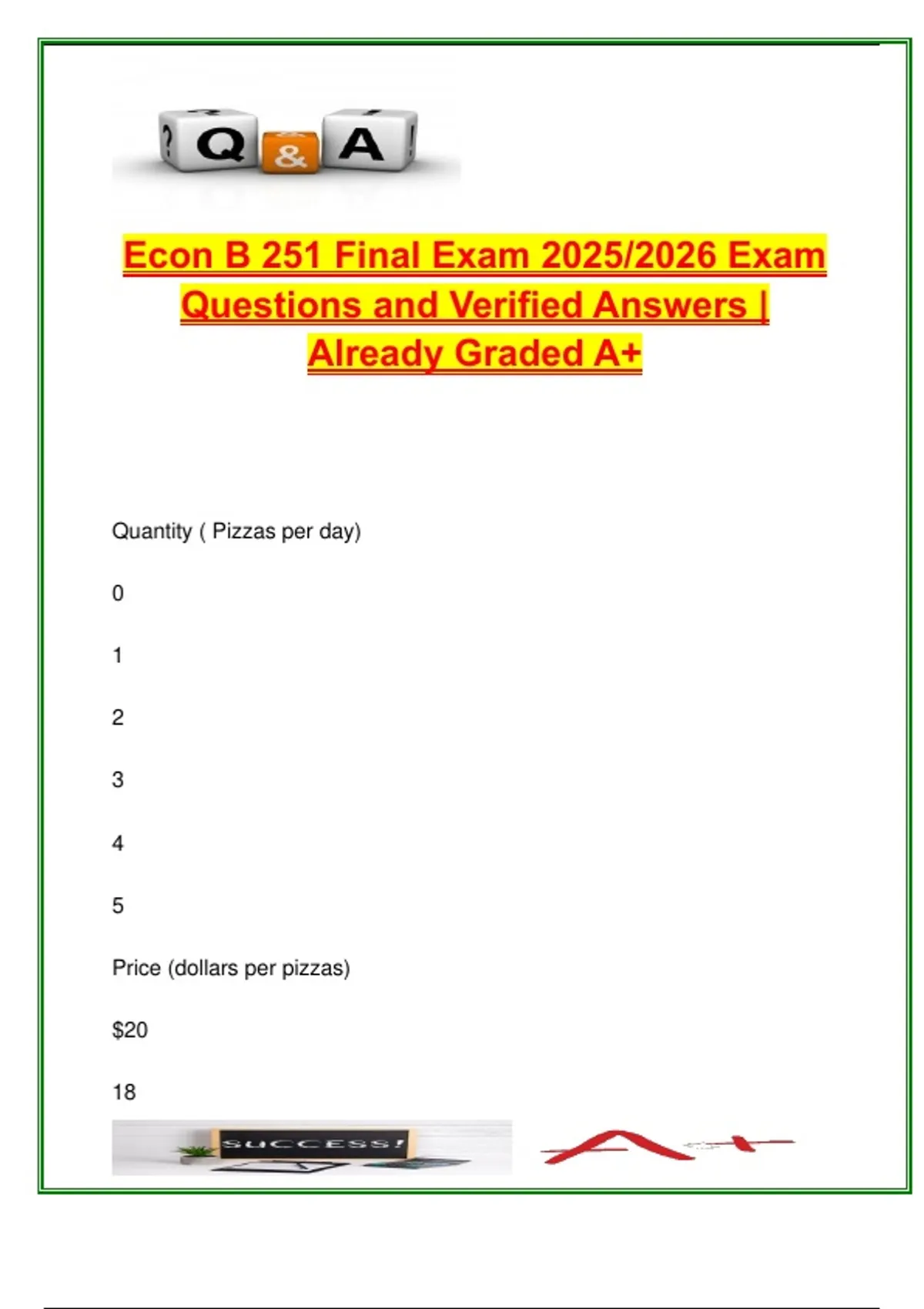 ECON B 251 EXAM COMPLETE PACKAGE DEAL