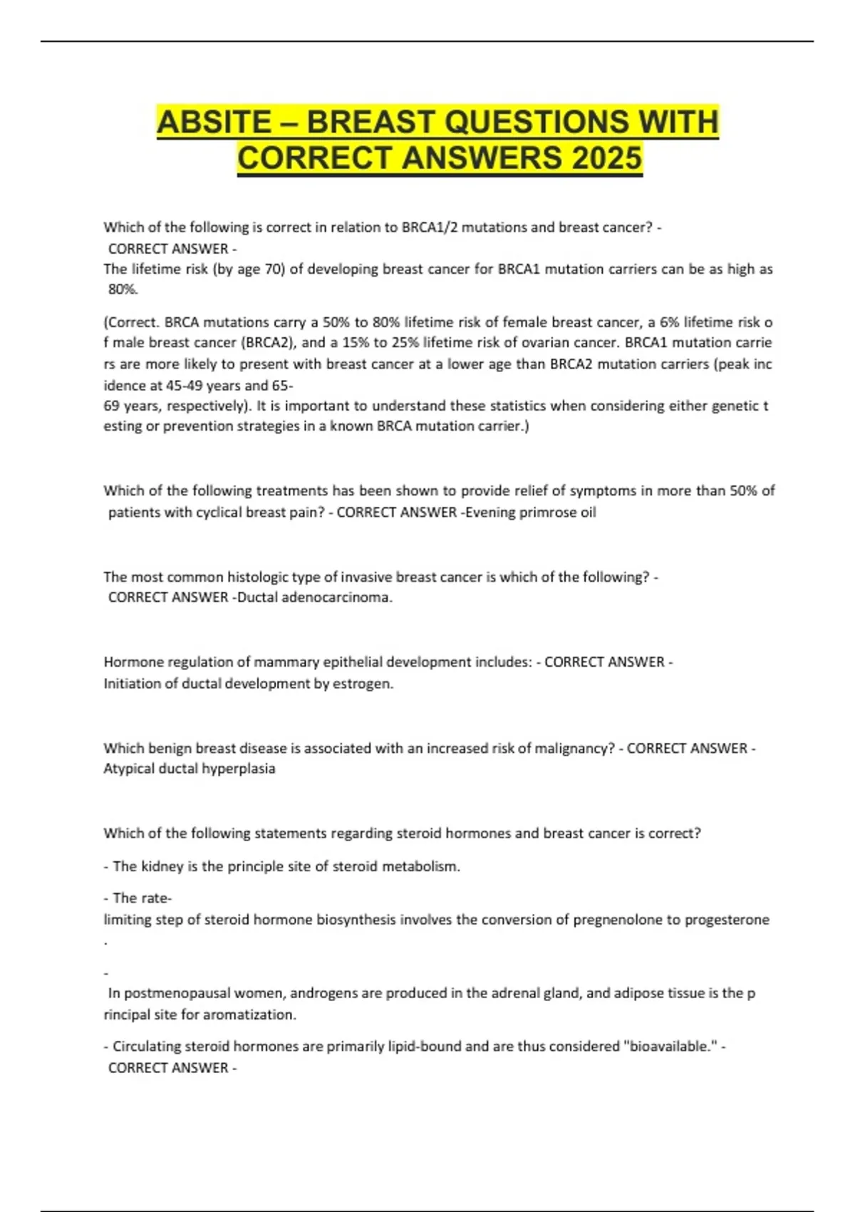 Get the ultimate ABSITE exam bundle featuring verified questions and correct answers across all surgical topics. Perfect for residents seeking comprehensive, high-yield exam preparation for