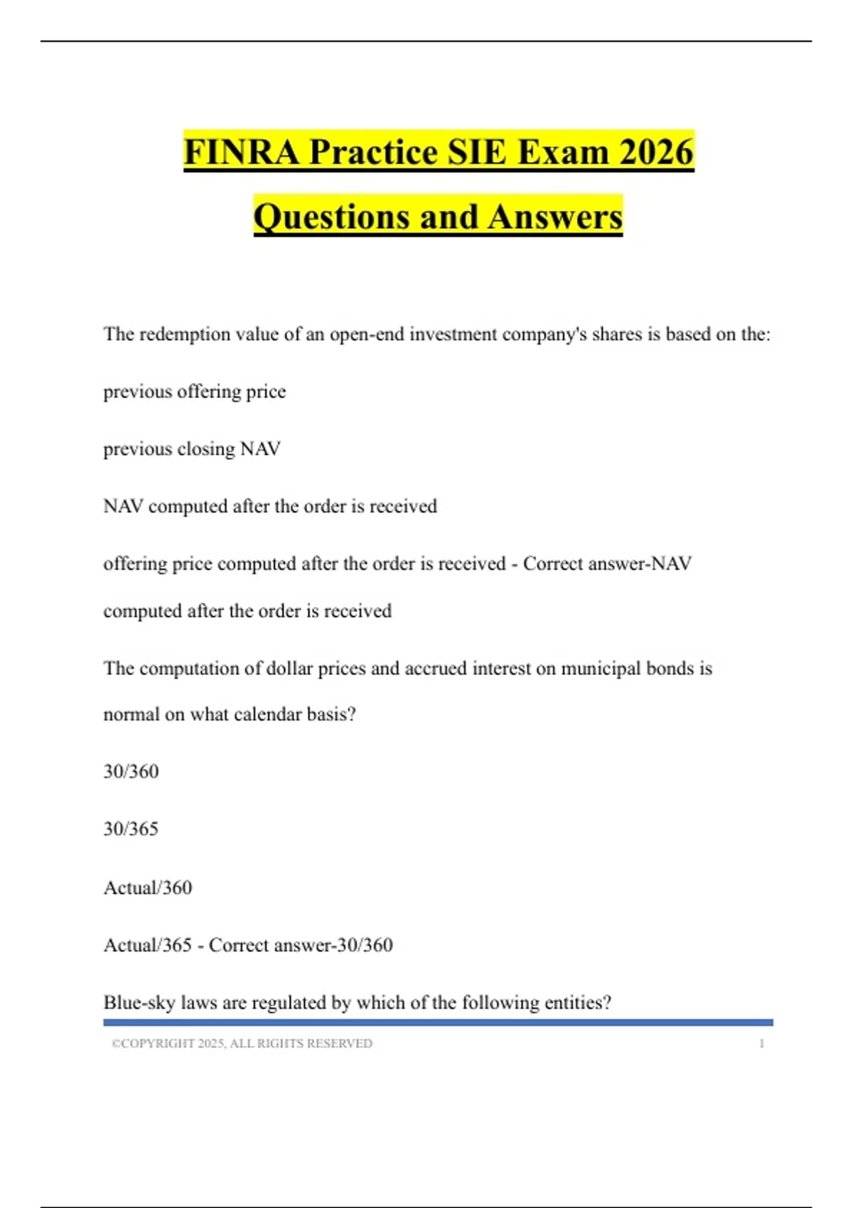 FINRA Practice SIE Exam 2026 Questions and Answers