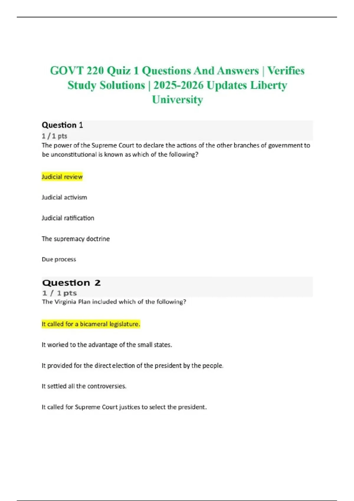 GOVT 220 Verified Package Deal With Full Course Study Questions And Answers Updates