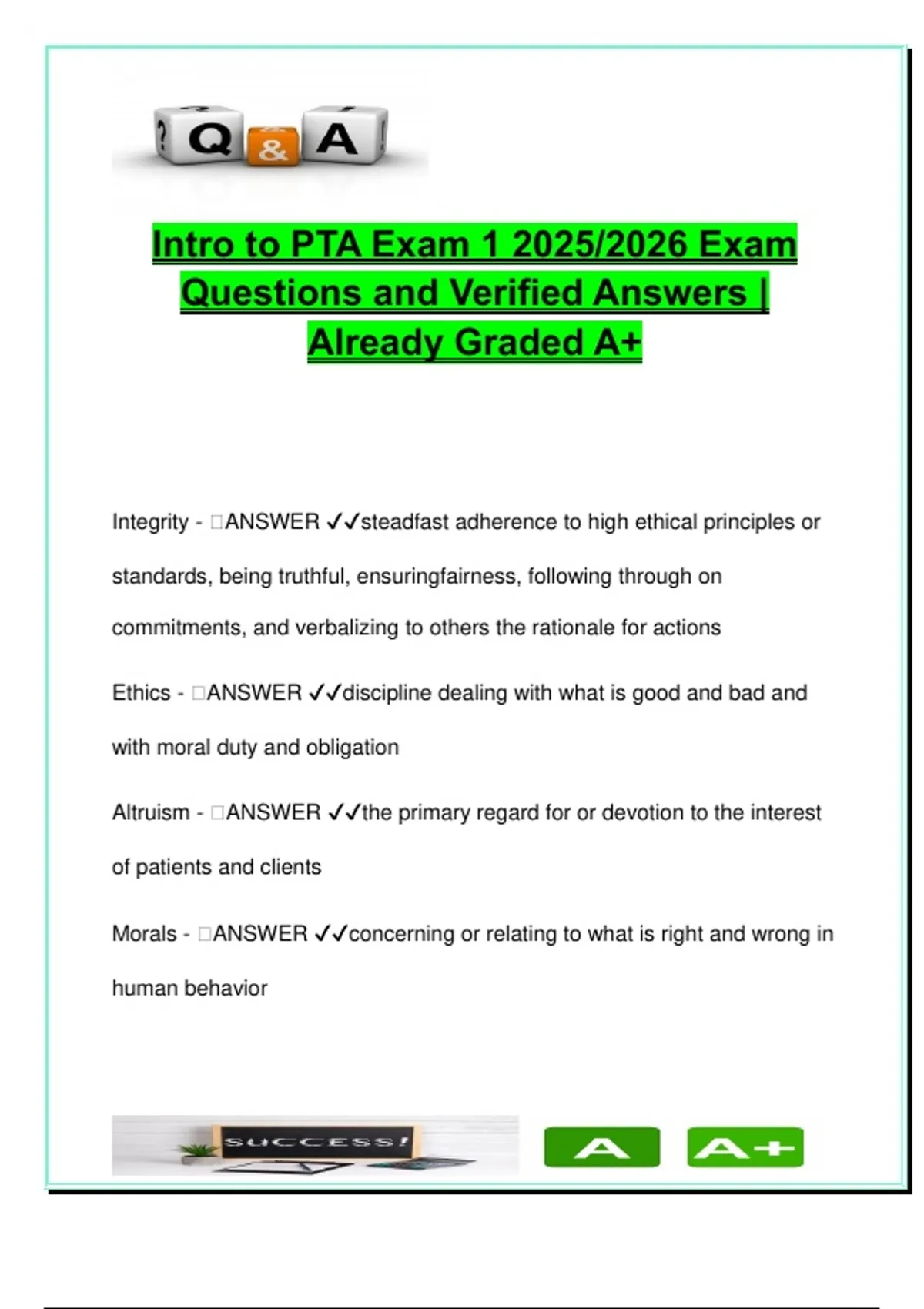 Intro to PTA – Exam 1 (2025/2026) | 50+ Questions | APTA Ethics, Professional Roles, PT History & Patient Management