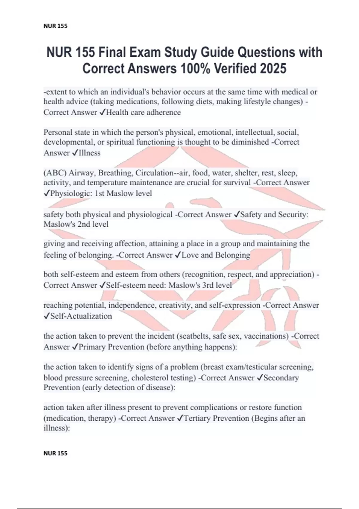 Galen College Of Nursing Package Deal | NUR155/NUR 155 Foundations to Nursing Exam 1-4 + Final Exam Questions and Answers Graded A+ 2025