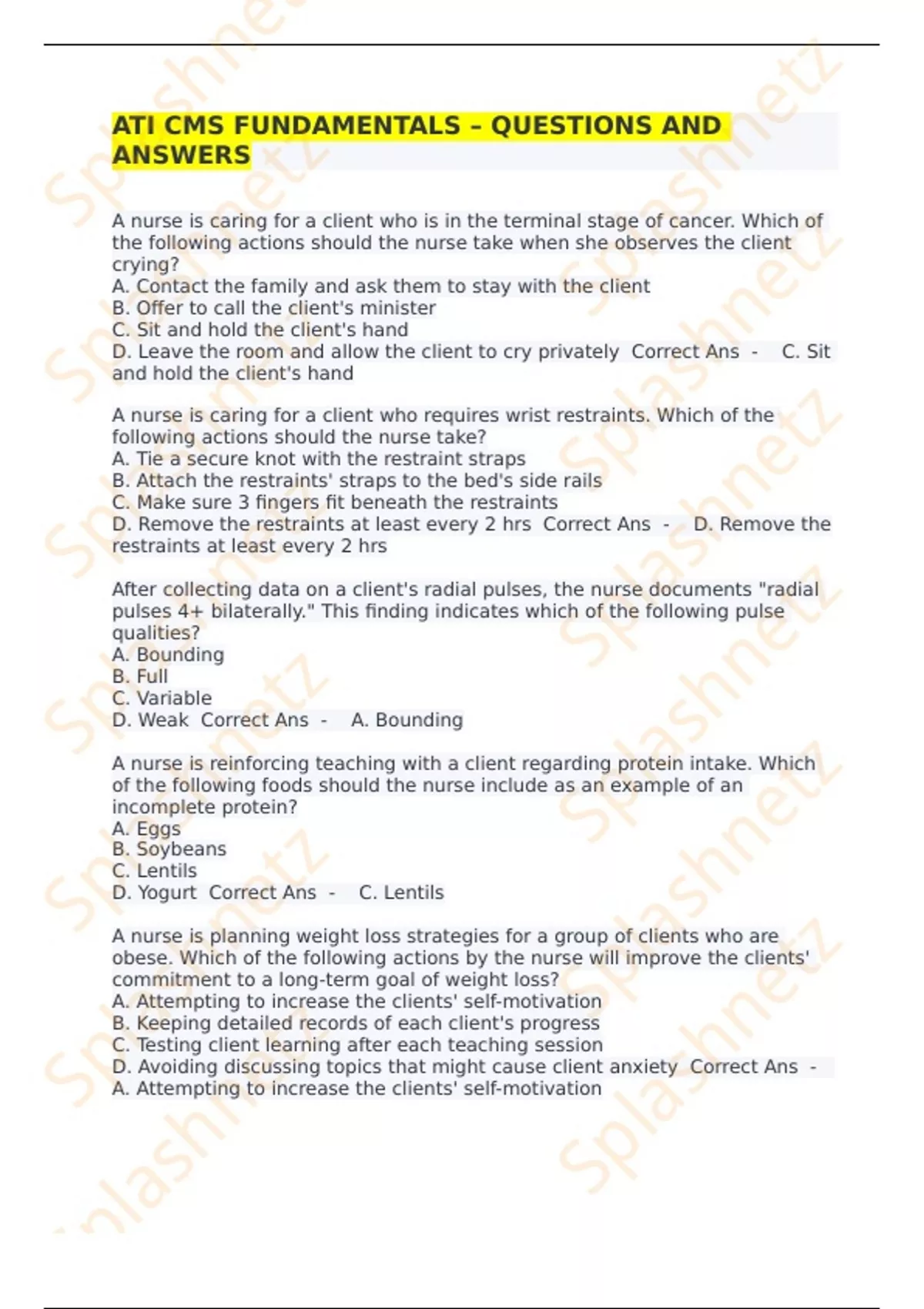 ATI FUNDAMENTALS CMS PROCTORED EXAM 2024/ 2025 LATEST QUESTIONS AND VERIFIED ANSWERS