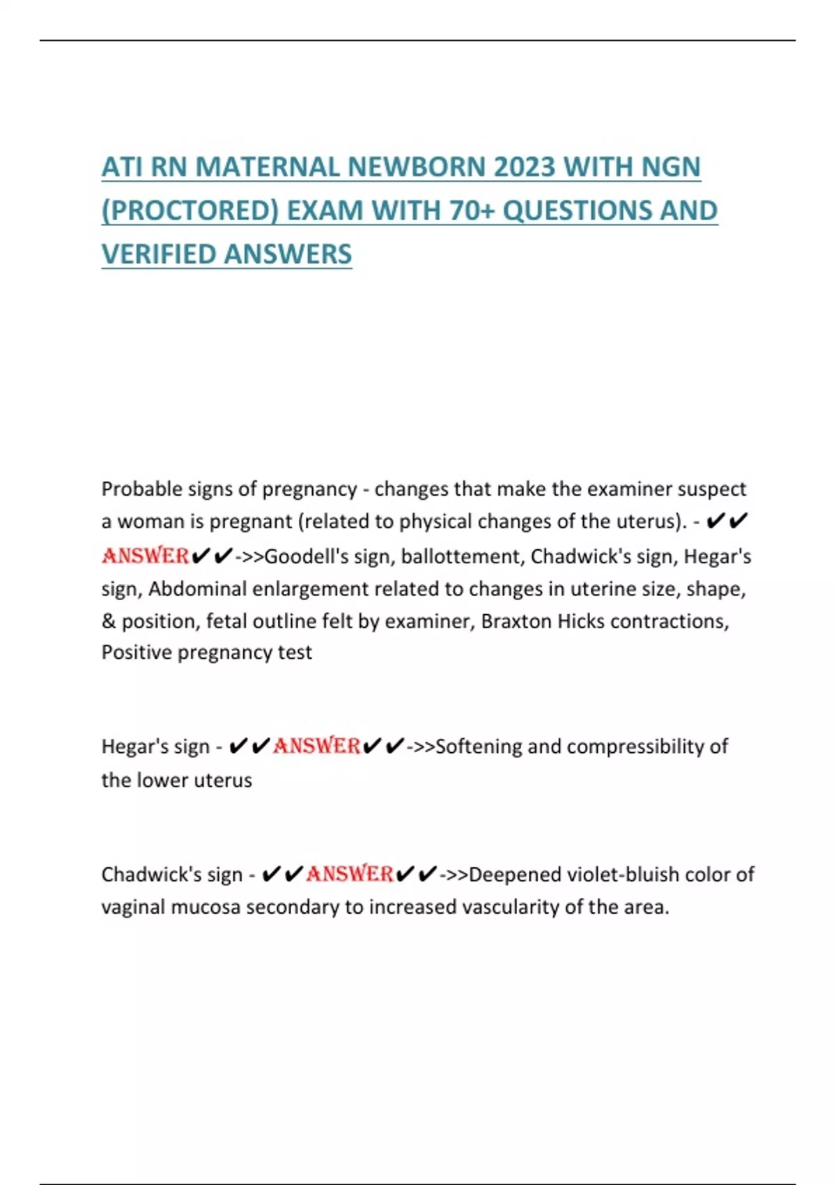 RN Maternal Newborn Exam 2025 Questions & 100% Correct Answers # Guaranteed Pass