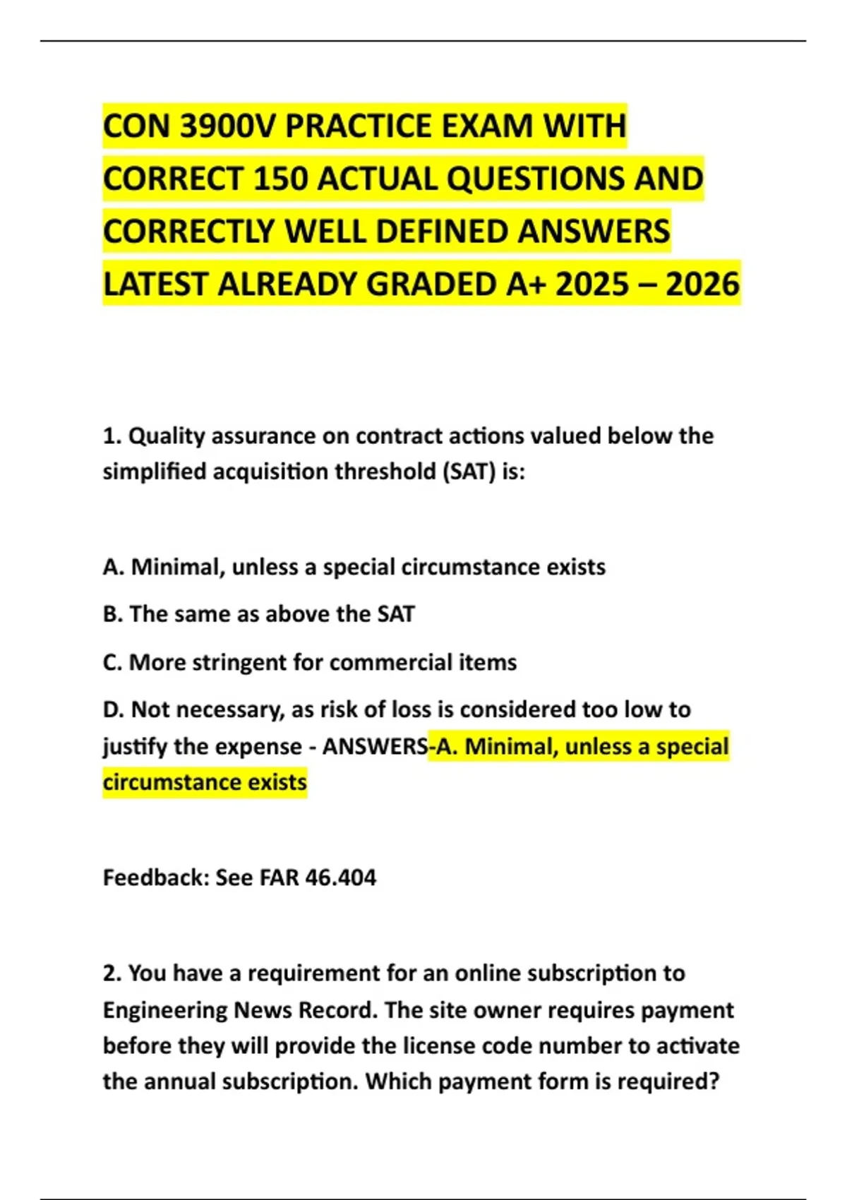 BUNDLE FOR CON 3900 EXAMS LATEST