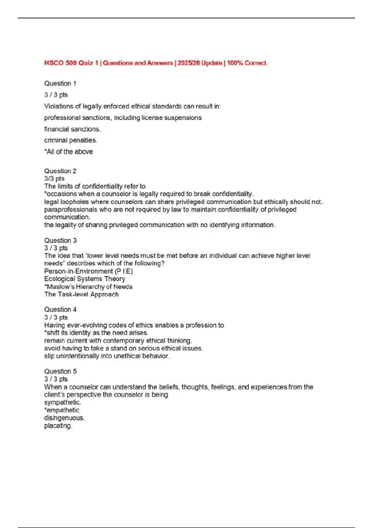 HSCO 500 Bundle with complete solutions.