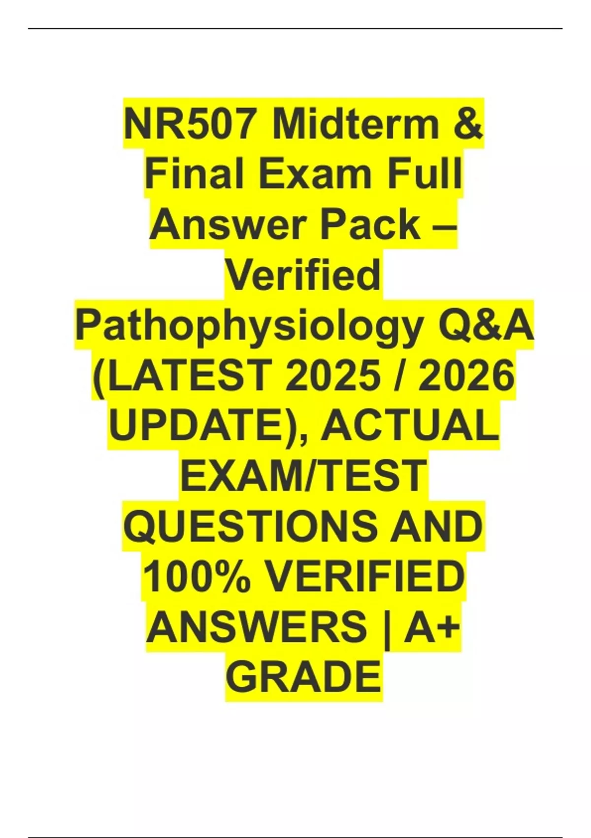 Get access to 100% verified exams, test banks, and study guides for ATI, NURSING, PMHNP, TNCC, USMLE, ACLS, WGU, and many more! We guarantee authentic, high-quality content designed to help you ace your exams with confidence. If you can’t find what you’re looking for, simply contact us — we’ll fetch it for you within minutes! ✅ Trusted by thousands of students ✅ Fast delivery & verified accuracy ✅ Guaranteed success on your next exam Buy with confidence — success starts here!
