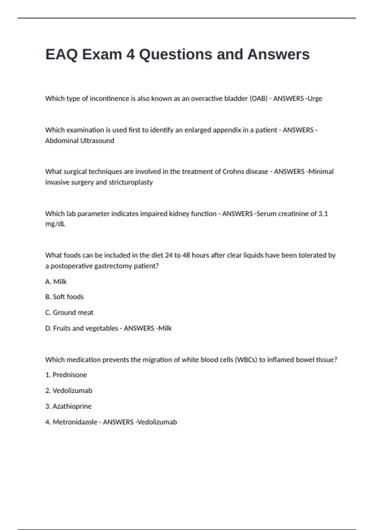 EAQ Exam 4 Questions and Answers
