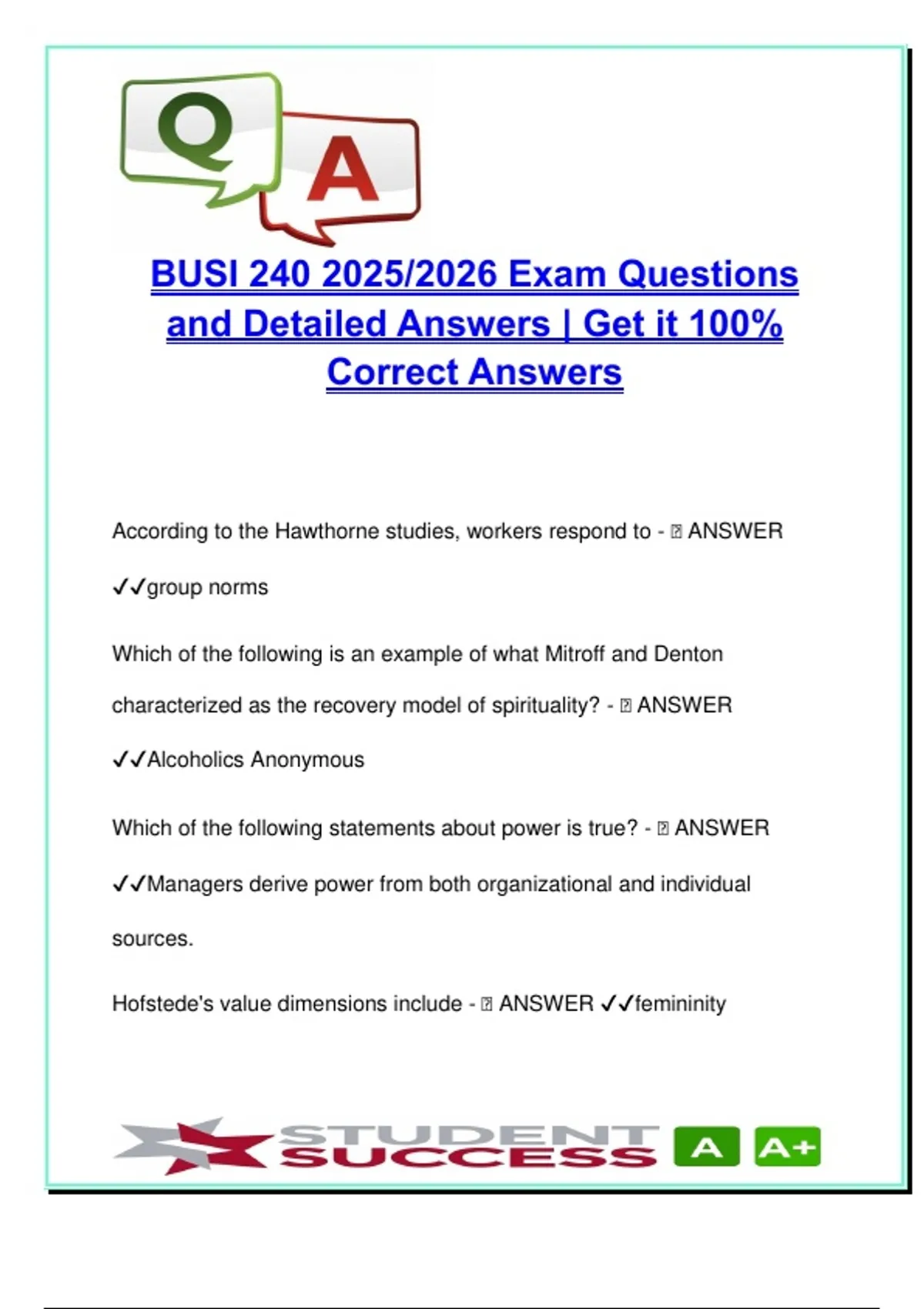 BUSI 240 EXAM COMPLETE PACKAGE DEAL