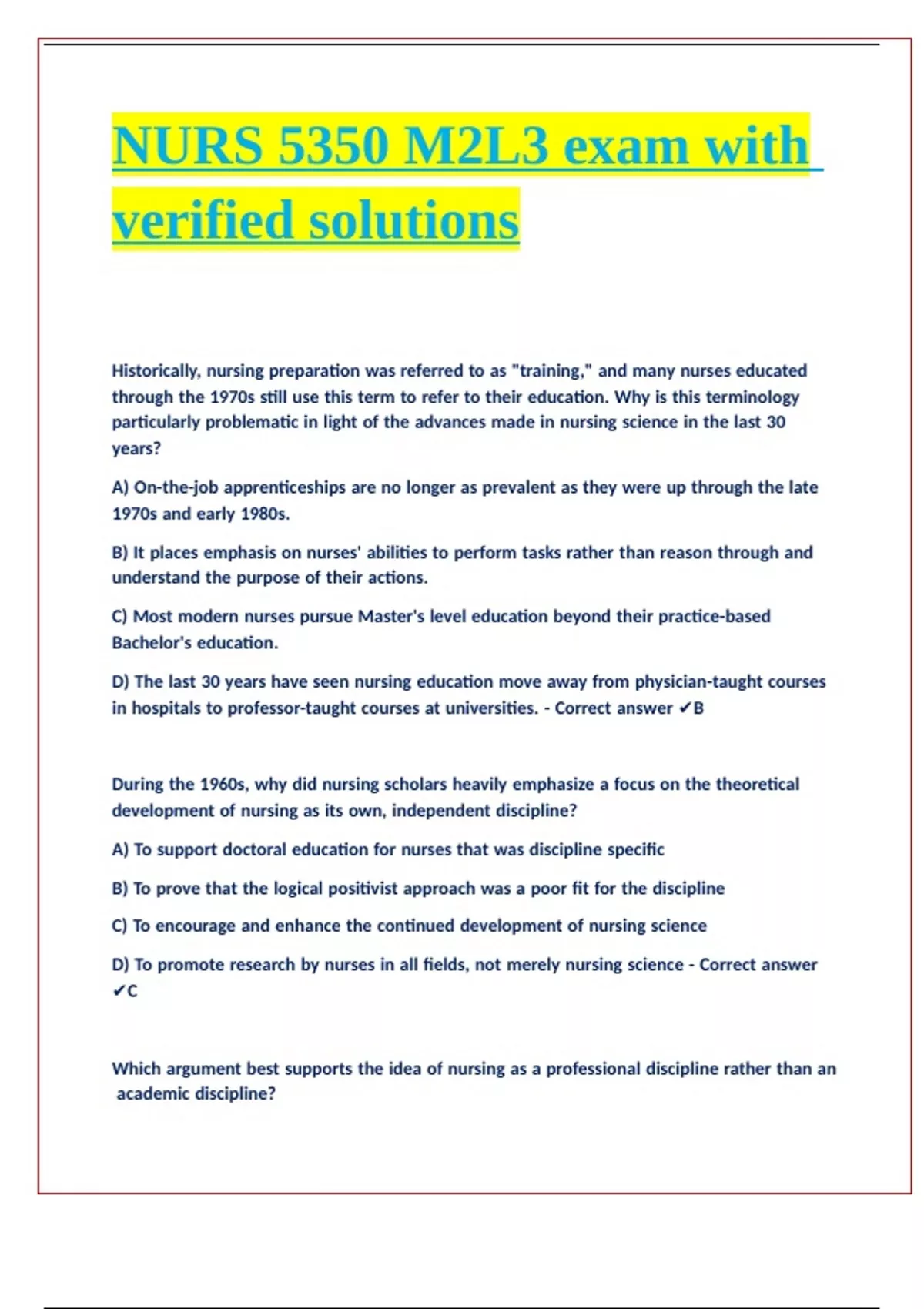 NURS 5350 M2L3 Exam with accurate detailed answers