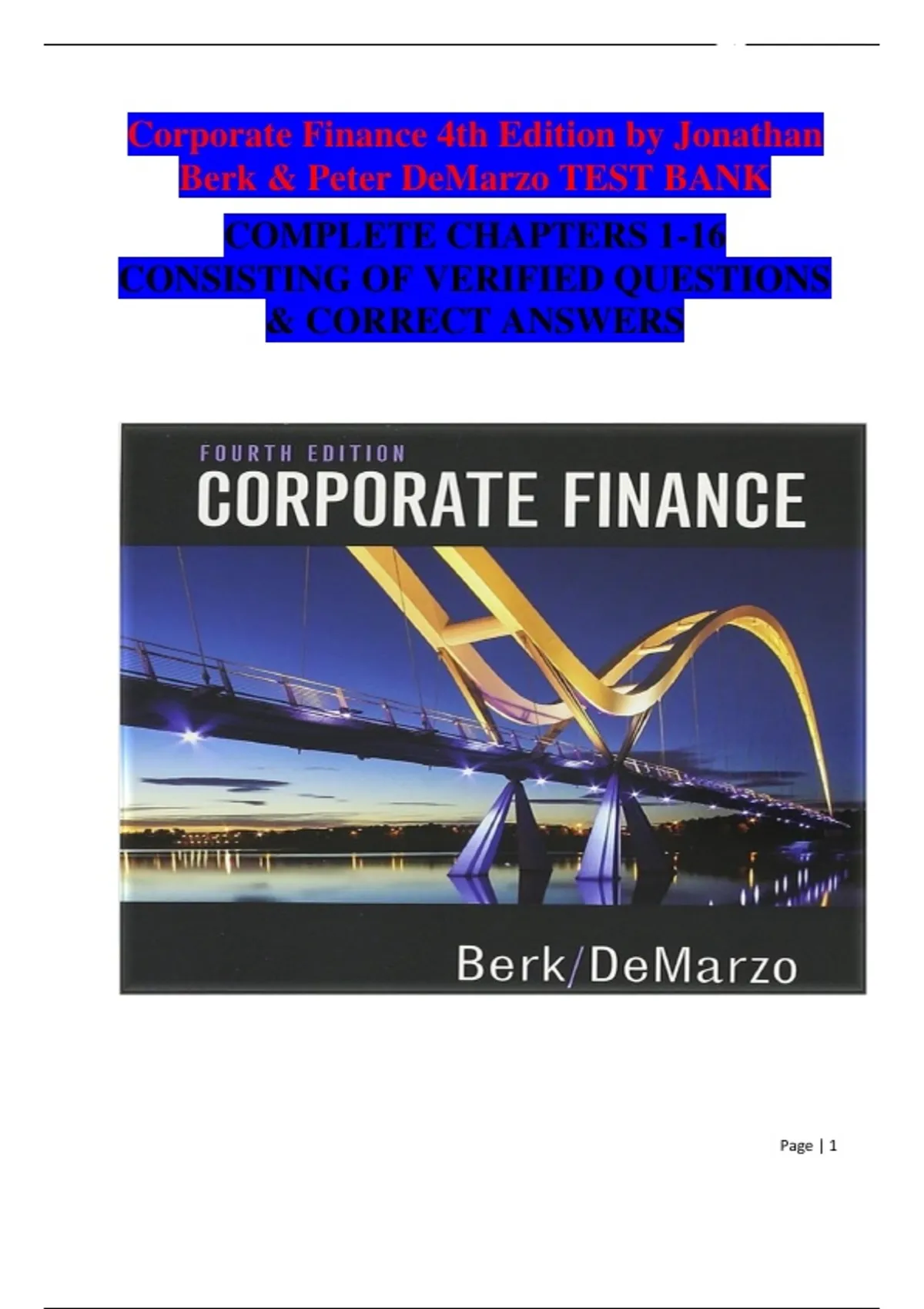 TEST BANKS| Corporate Finance| 4th Edition; 2024 Edition; Complete Test Bank with Verified Answers
