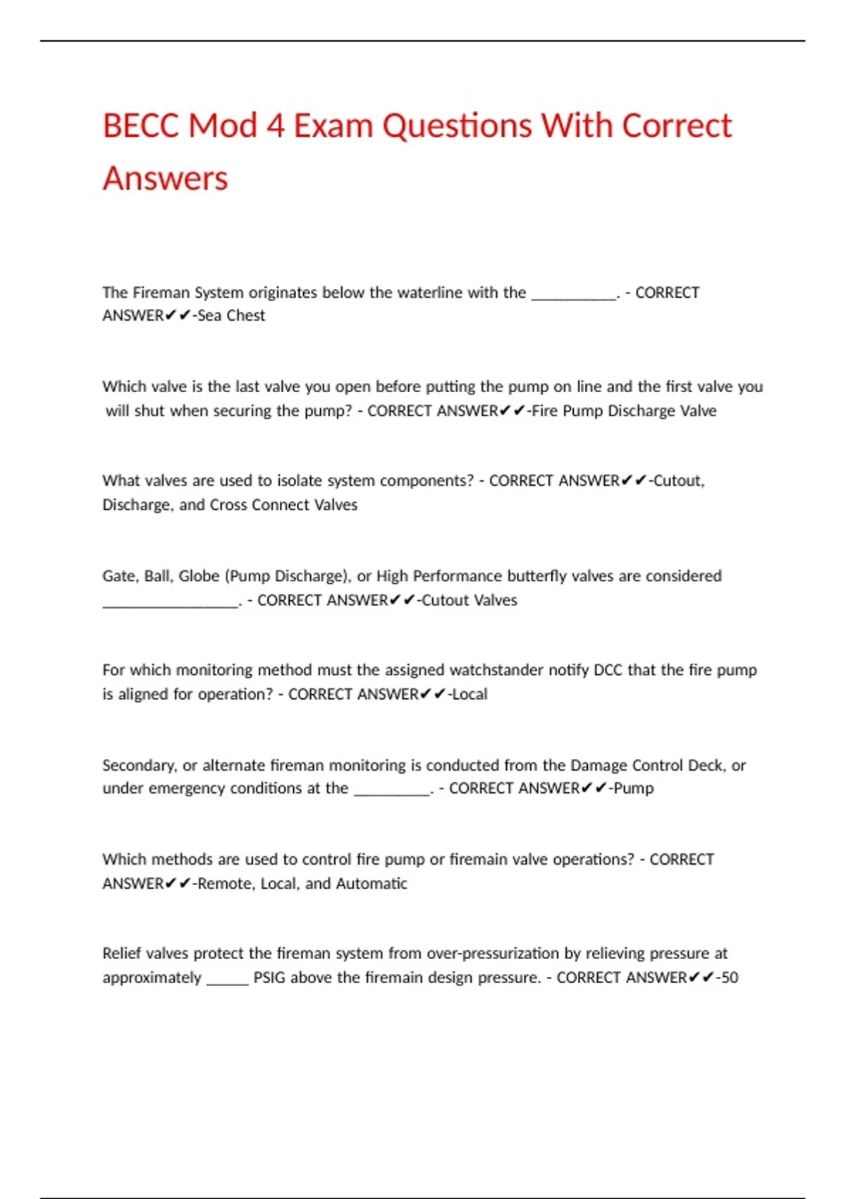 BECC MOD 1 TEST QUESTIONS WITH COMPLETE SOLUTIONS