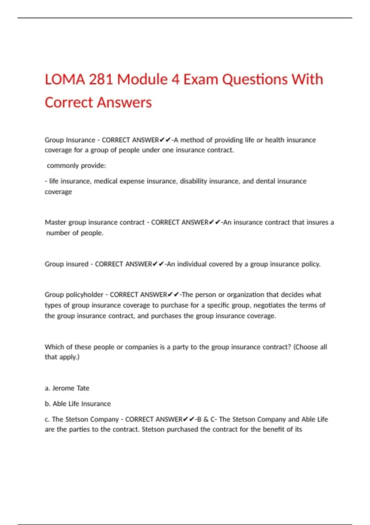 LOMA 281 BUNDLED EXAMS WITH COMPLETE SOLUTIONS