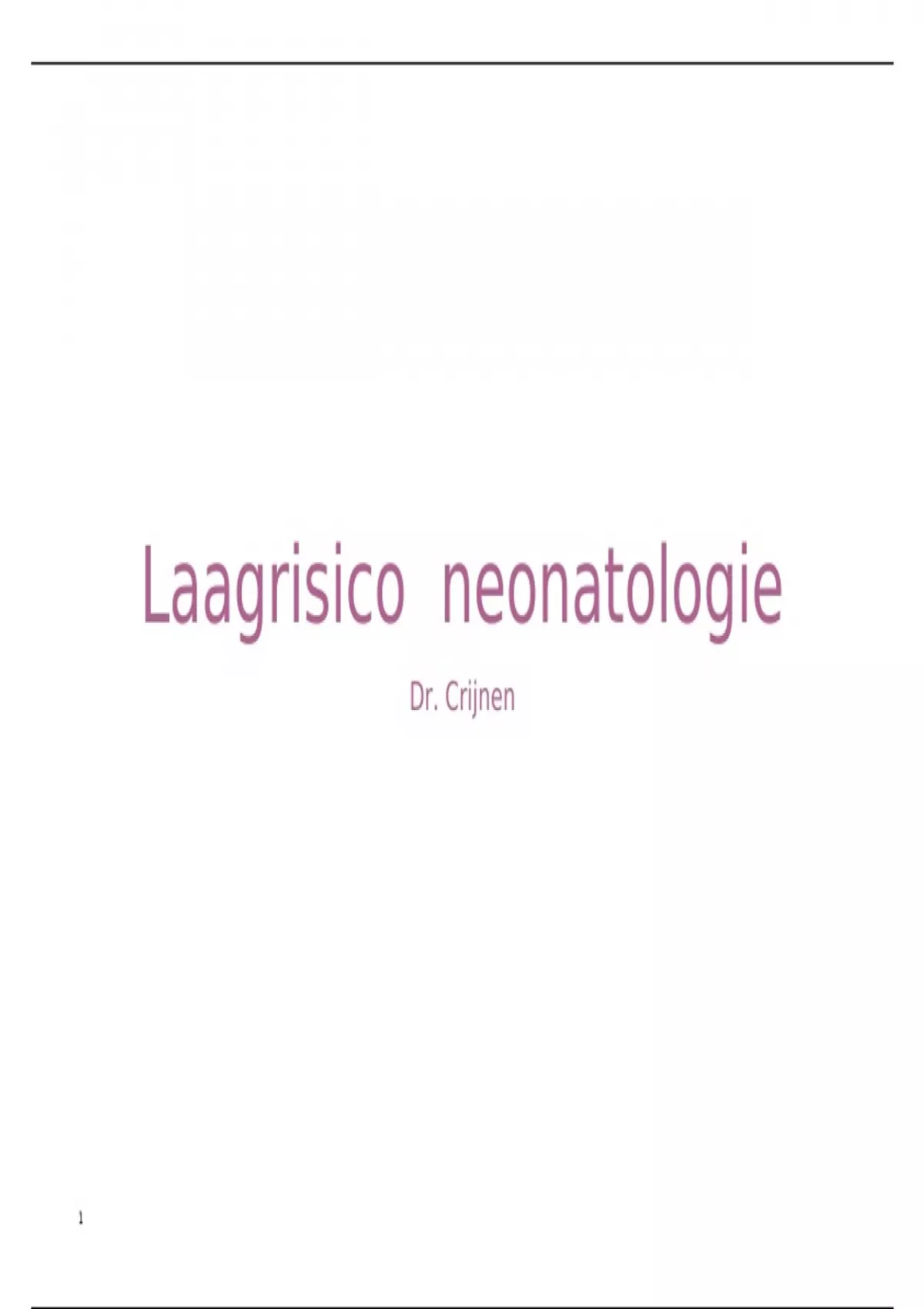 Samenvatting laagrisico neonatologie dr. Crijnen