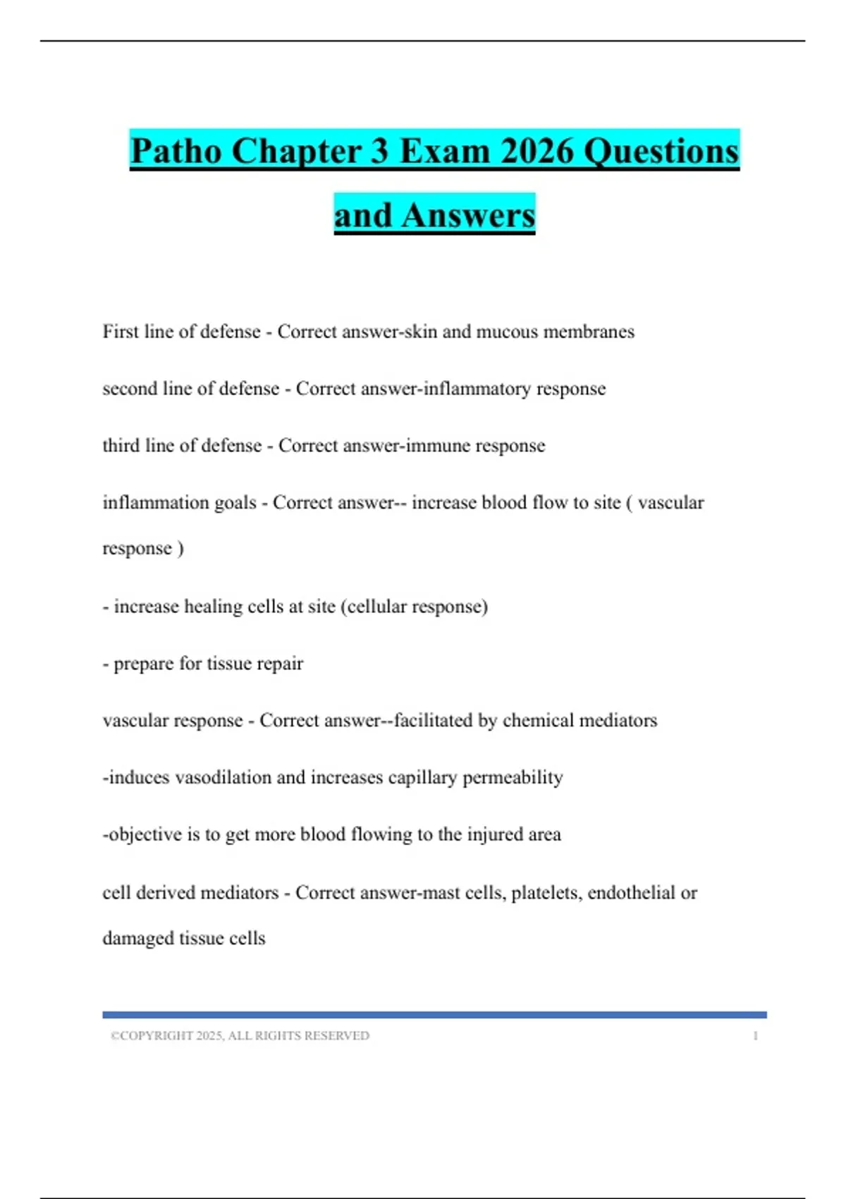 Patho Chapter 3 Exam 2026 Questions and Answers