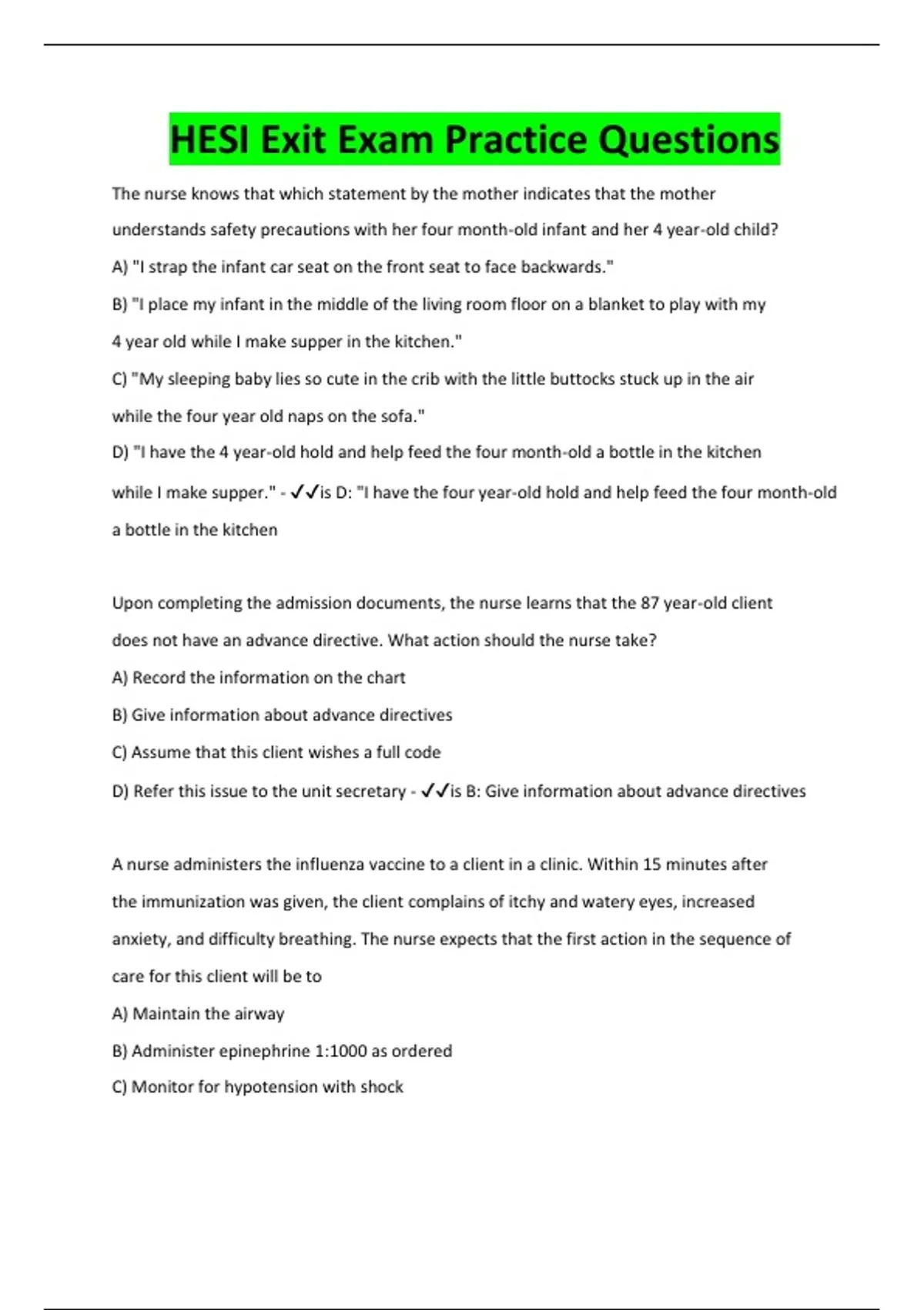 This is a compilation of several latest exams and test materials for Hesi Exit. these exams have well structured questions all with accurate and verified answers. with this package, you have success in your hands. grab it now!!!