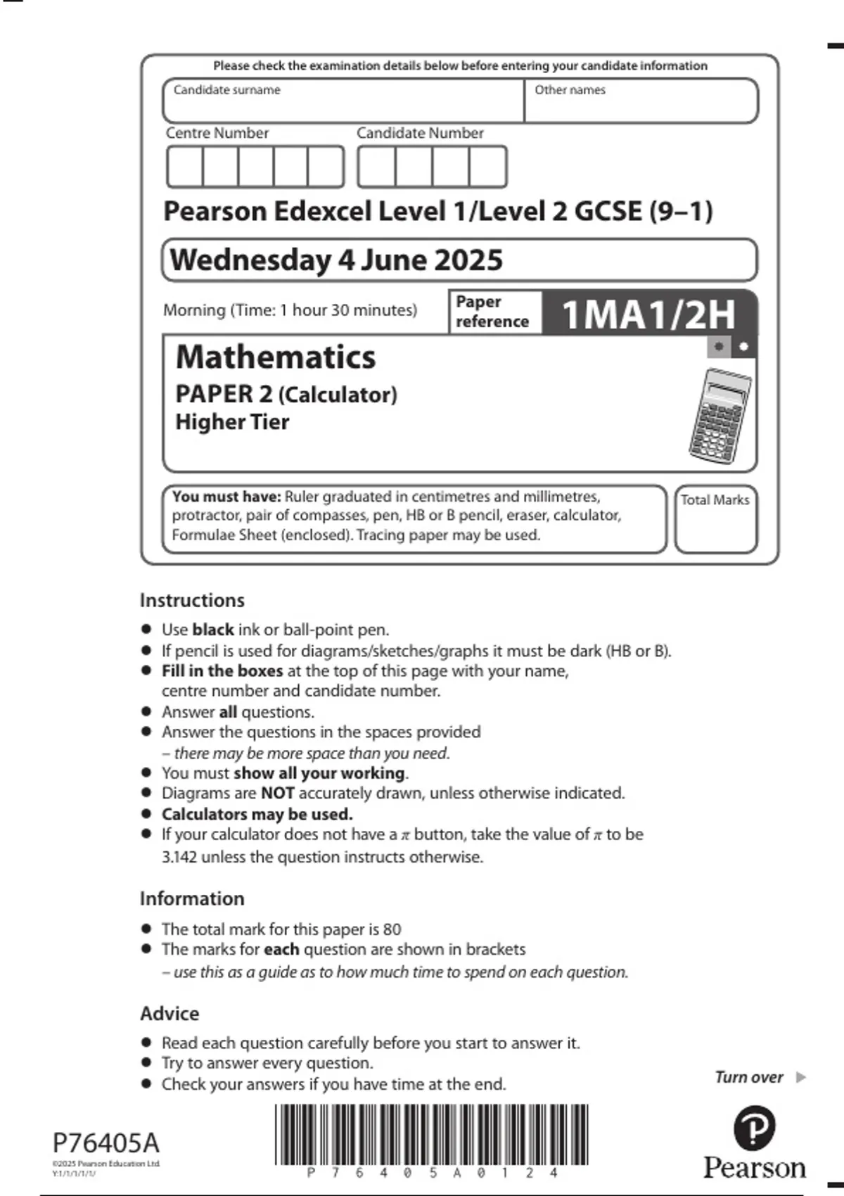 GCSE Edexcel Maths June 2025 Paper 2 Question Paper and Markscheme [VERIFIED]