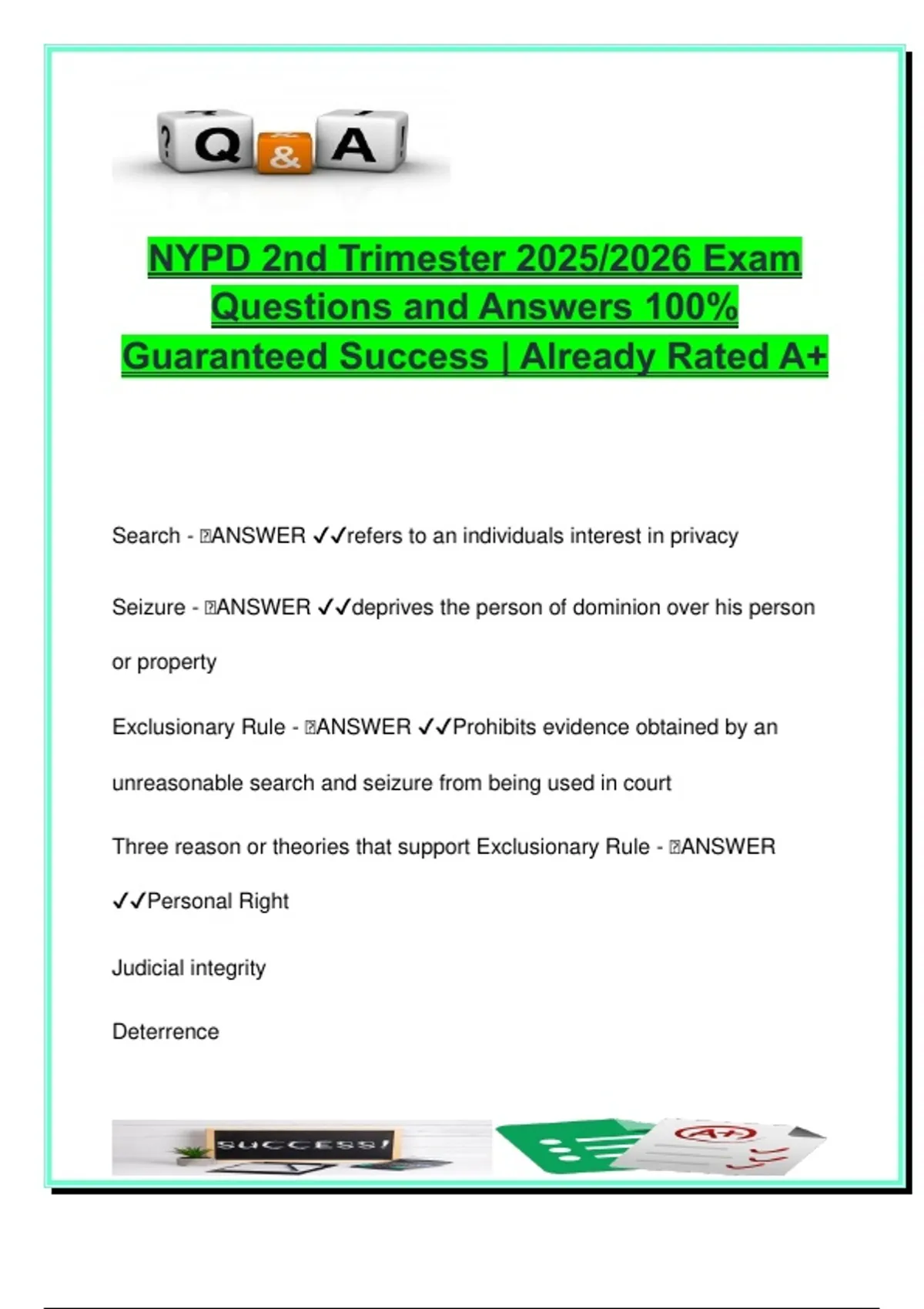 NYPD 2nd Trimester Exam Guide (2025/2026) – 140+ Questions & Answers | Criminal Law, Juvenile Procedures, Use of Force