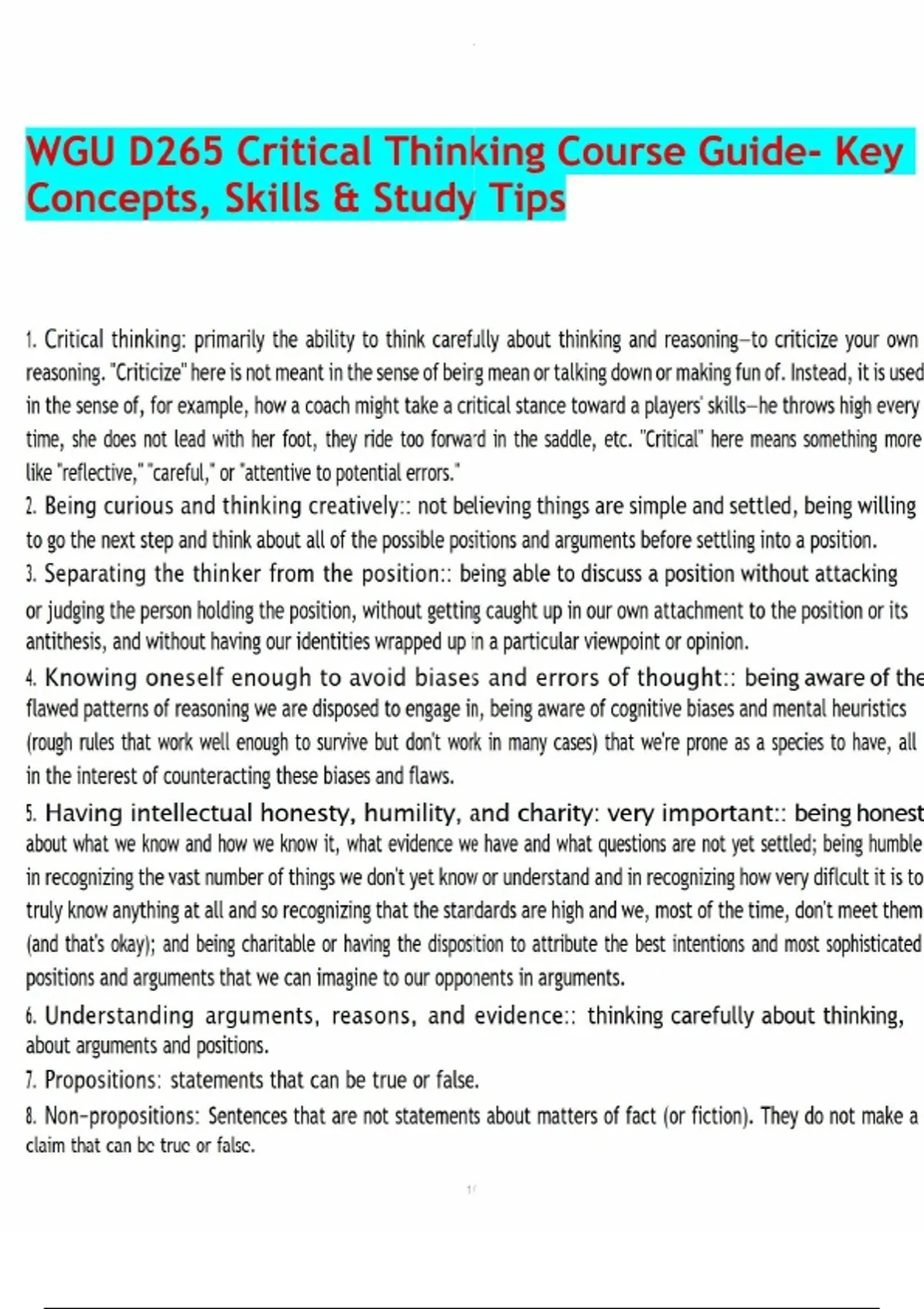 WGU D265 Critical Thinking Complete Study Bundle: Logic, Reasoning, Evidence & Argument AnalysisWGU D265 Critical Thinking Complete Study Bundle: Logic, Reasoning, Evidence & Argument AnalysisWGU D265 Critical Thinking Complete Study Bundle: Logic, Reasoning, Evidence & Argument AnalysisWGU D265 Critical Thinking Complete Study Bundle: Logic, Reaso