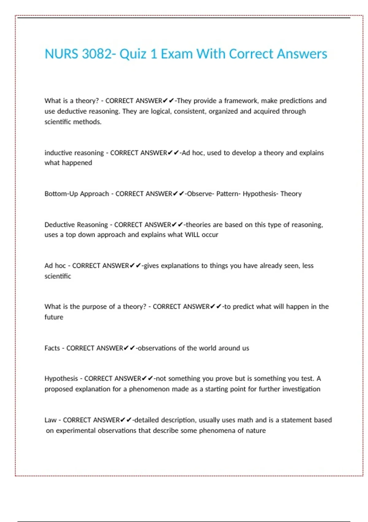 NURS 3082 BUNDLED EXAMS WITH COMPLETE SOLUTIONS