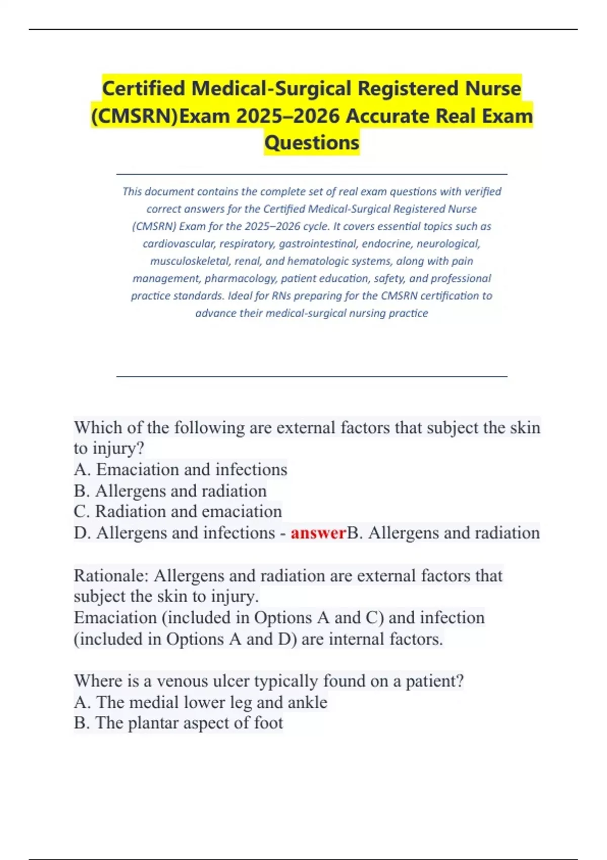 ATI RN AND PN Adult Medical/Surgical Nursing EXAM LATEST VERSION 2025 QUESTIONS AND CORRECT DETAILED ANSWERS (