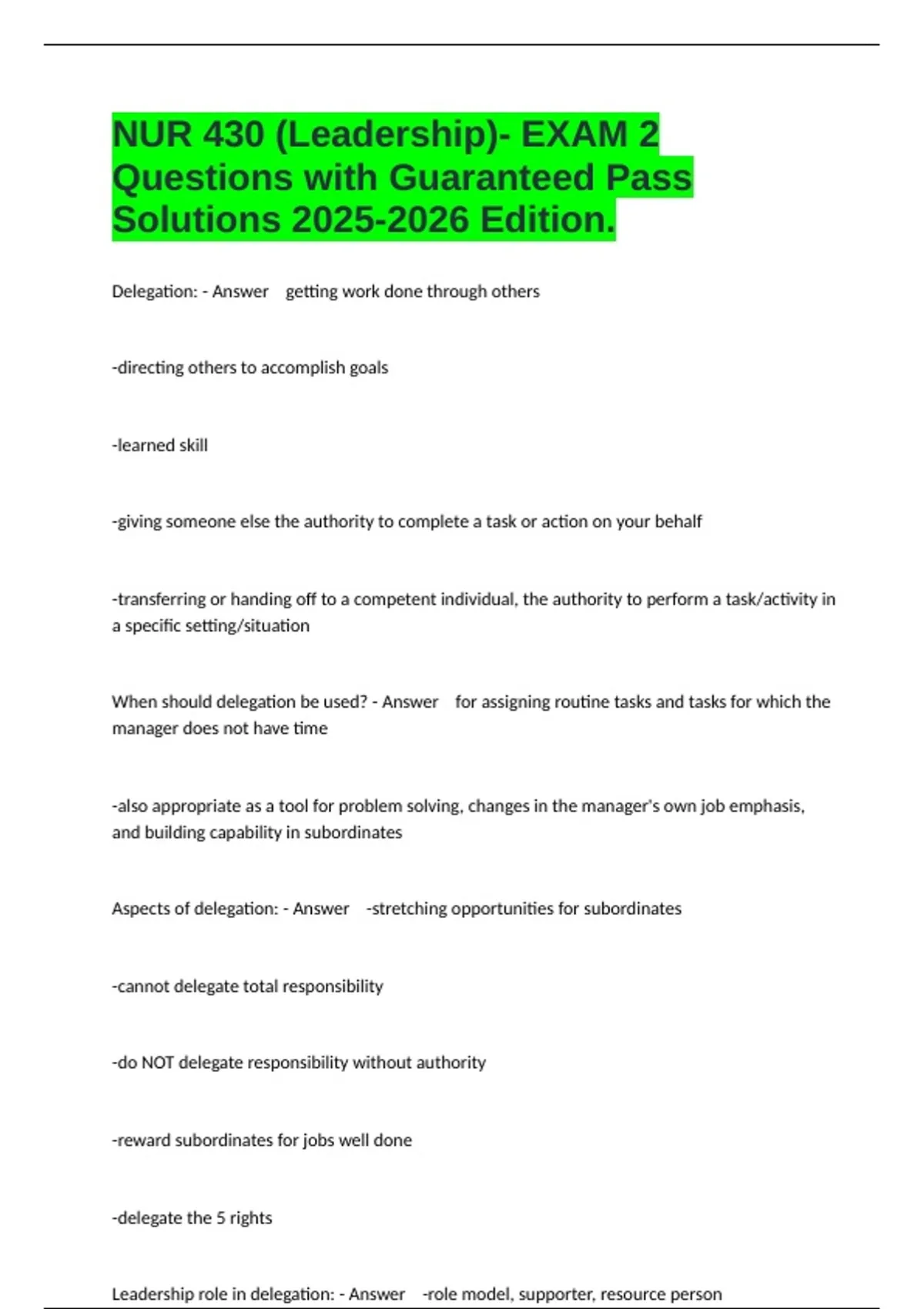 NUR 430 -Excelsior College Exam Package Deal Bundle With 100% Correct Answers Updated.