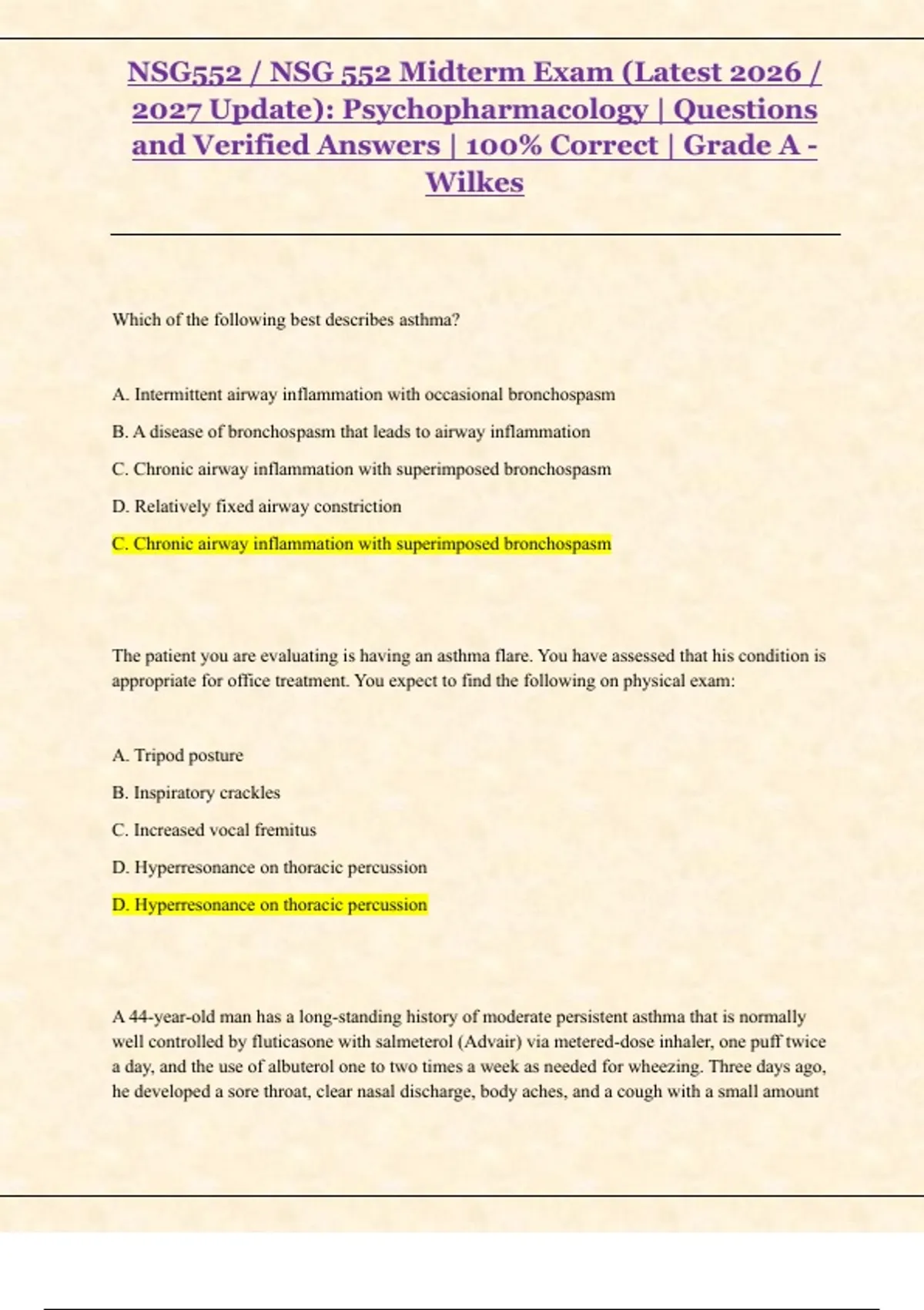 Exam 1, Exam 2 & Exam 3: NSG552 / NSG 552 (Latest 2026 / 2027 Update) STUDY PACKAGE DEAL WITH COMPLETE SOLUTIONS | Psychopharmacology Exams | Complete Reviews with Questions and Verified Answers | 100% Correct | Grade A - Wilkes