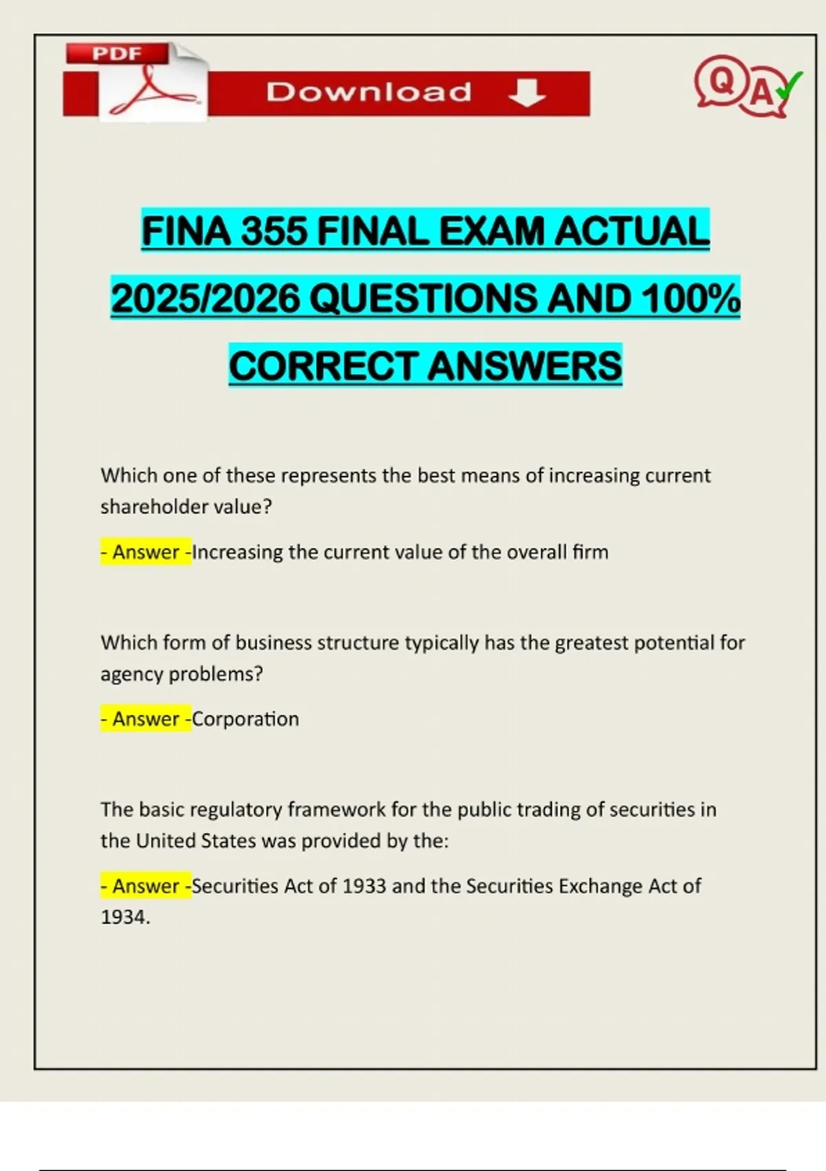 PACKAGE DEAL::: FINA 5320 EXAMS WITH MIDTERMS & FINALS ACTUAL 2025/2026