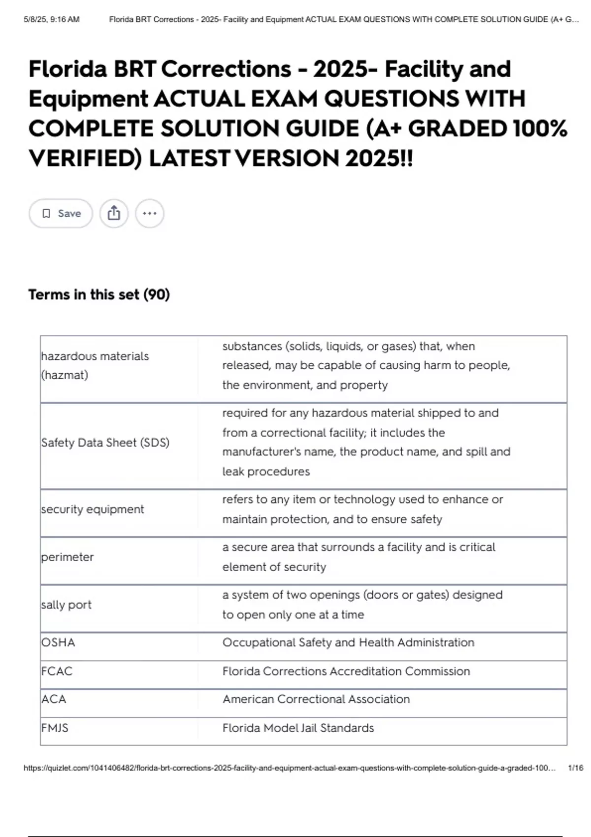 Florida BRT Corrections - Facility and Equipment Exam Questions & Answers | 100% Verified solutions |Questions with Correct Answers 2025 latest update!!