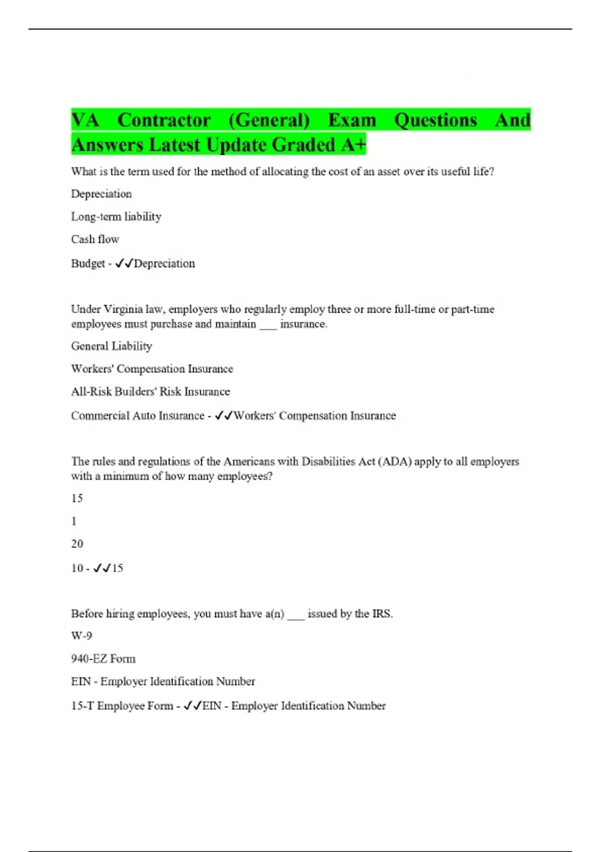 VA Contractor General Exam Questions And Answers Latest Update Graded A+