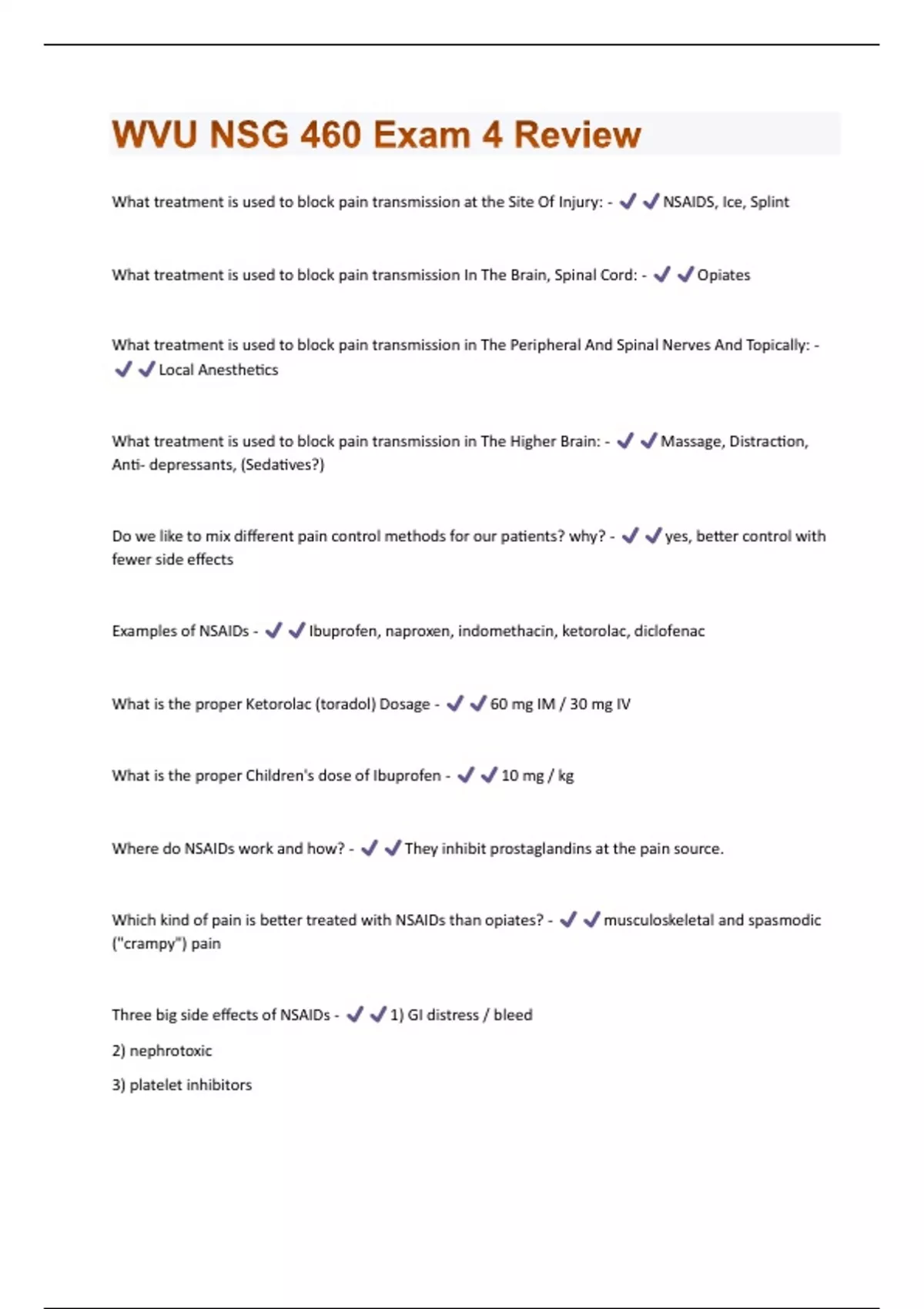 WVU NSG 460 Pain and Sedation Exam 4 Content Questions and Answers Best rated A+ Guaranteed Success Latest Update