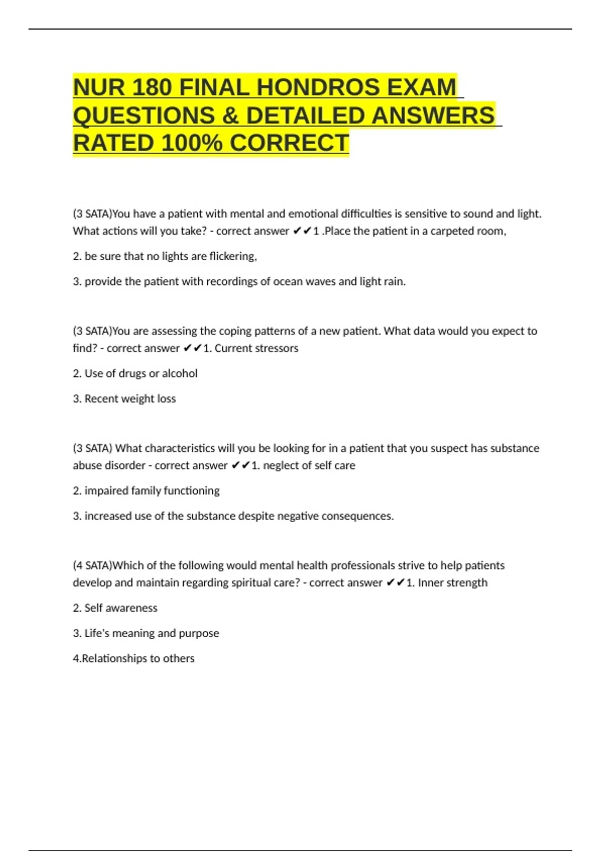 NUR 180 FINAL HONDROS EXAM QUESTIONS & DETAILED ANSWERS RATED 100% CORRECT