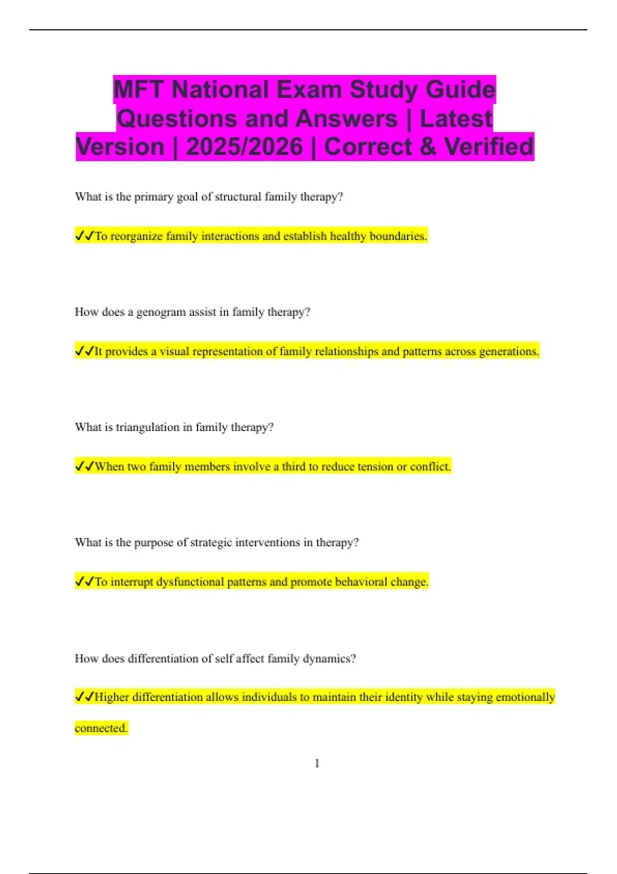 MFT Bundled Exams Questions and Answers Latest Versions (2025/2026) (Complete and Accurate)