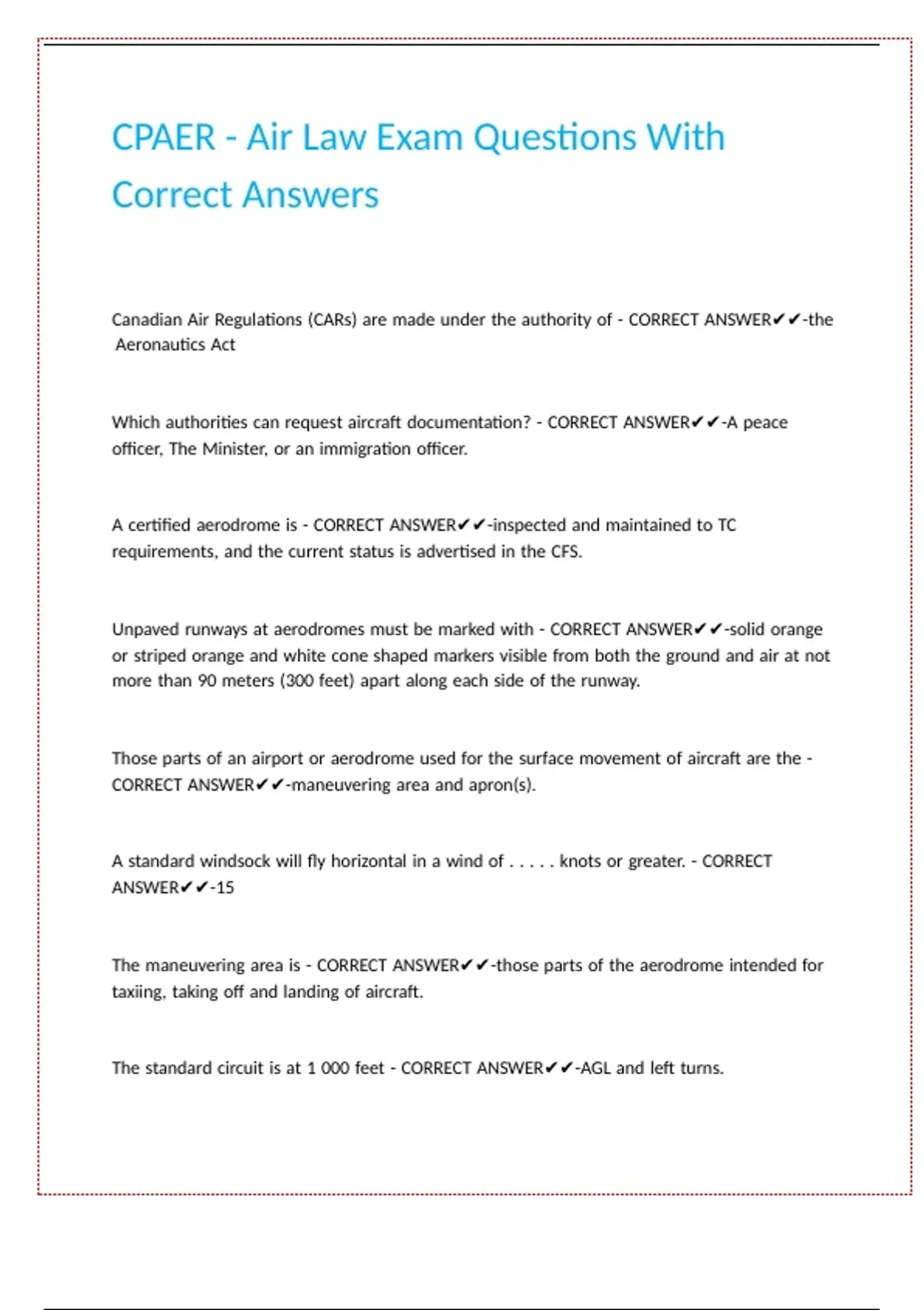 CPAER Canada Commercial Pilot Exam Questions With Correct Answers