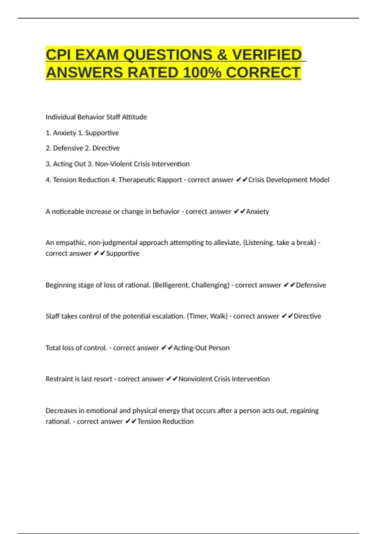 The CPI Exam Quizlet (Crisis Prevention Institute exam Quizlet) is an online study resource created by students and professionals preparing for the CPI Nonviolent Crisis Intervention certification exam. It contains flashcards, practice questions, and summaries that review the core principles, intervention techniques, and safety strategies taught in