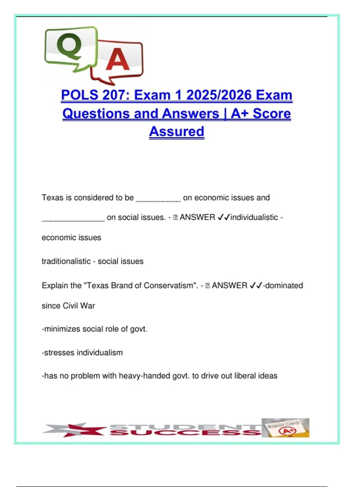 POLS 207 EXAM COMPLETE PACKAGE DEAL