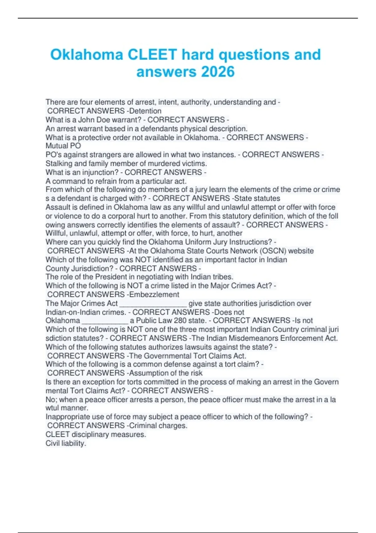 Oklahoma CLEET hard questions and answers 2026
