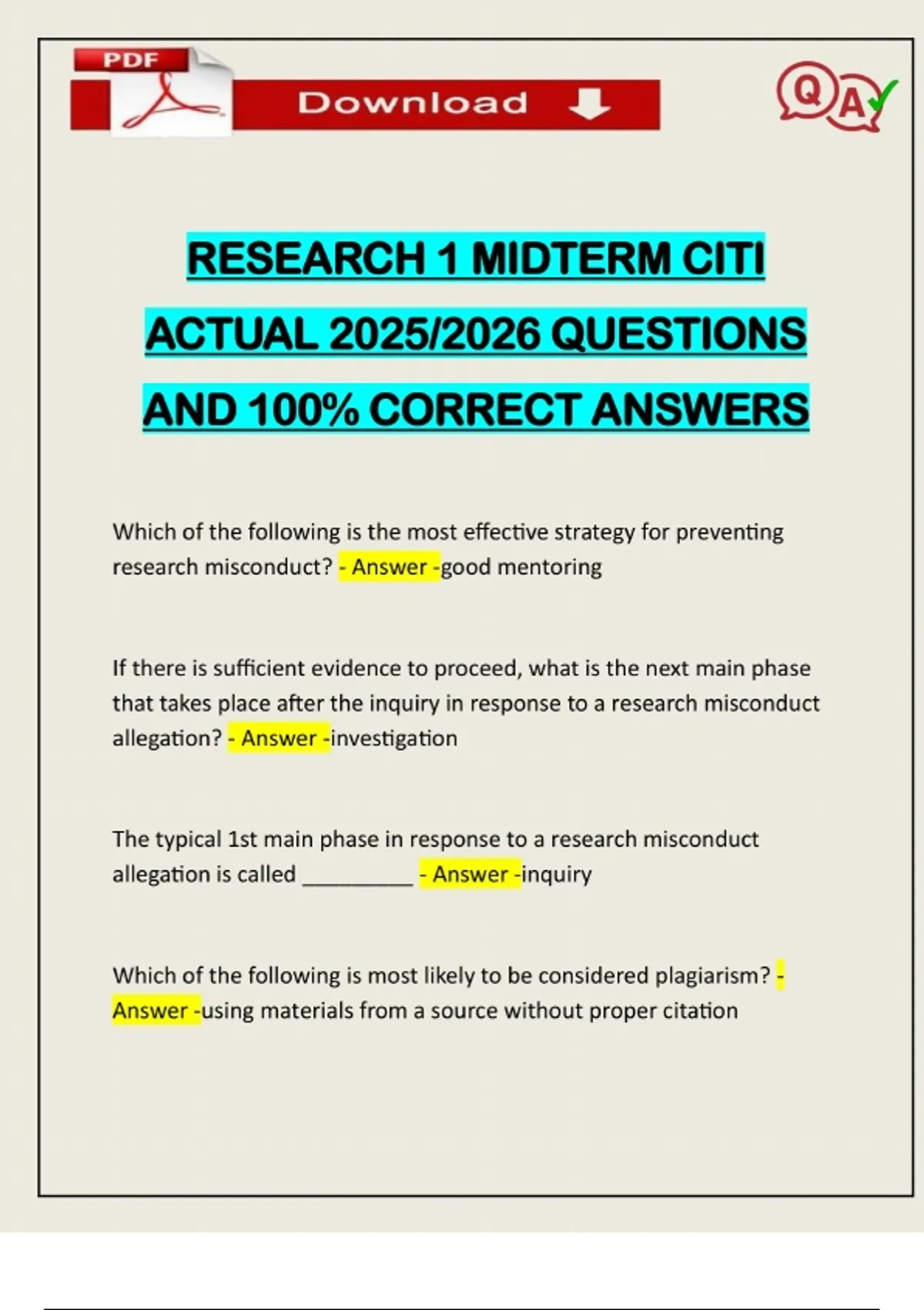 FULL EXAMS BUNDLE:: CITI EXAMS WITH MIDTERM & FINALS ACTUAL 2025/2026 Q&A 100% PASS