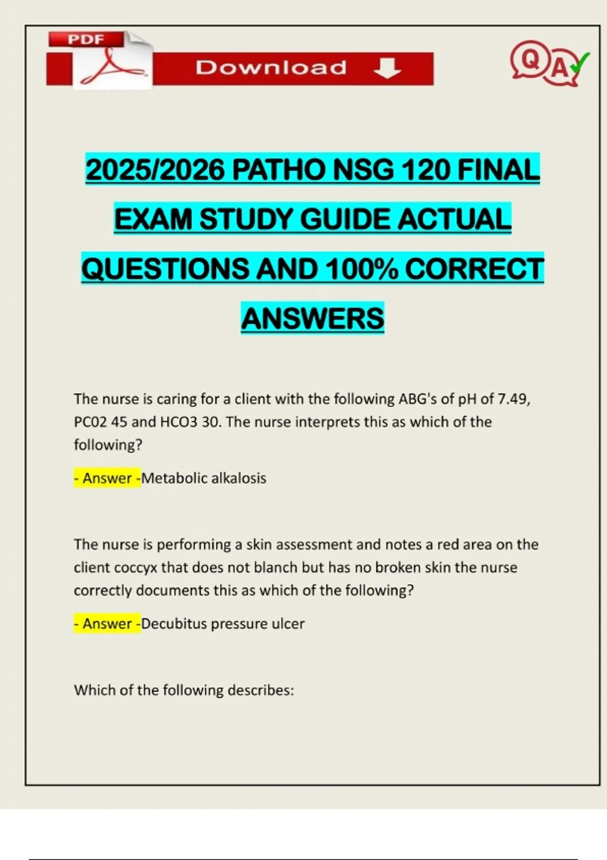 BUNDLE EXAMS::: PATHO NSG 120 EXAMS WITH MIDTERM & FINALS ACTUAL 2025/2026